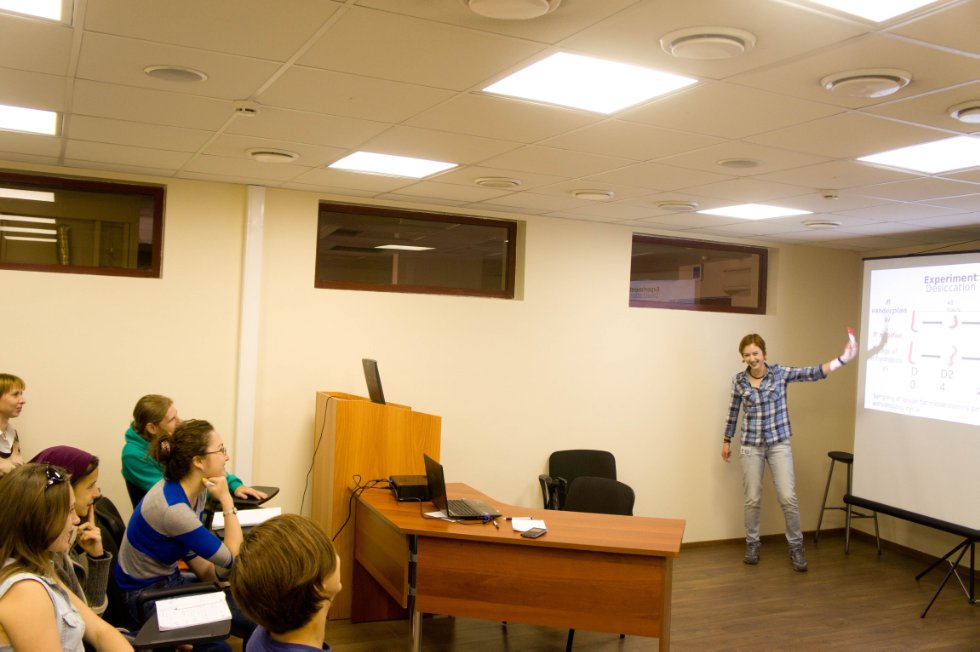 Второй день семинара проводился совместно с компанией Биорад, где специалисты рассказали о методе реал-тайм ПЦР, как он используется учеными в разных областях фундаментальной и прикладной биологии. Конечно, тема изучения механизмов устойчивости к высыханию и другим экстремальным условиям среды при помощи этого и других методов оценки экспрессии как отдельных генов, так и многообразия генов на уровне целого всего генома вызвала огромный интерес.
