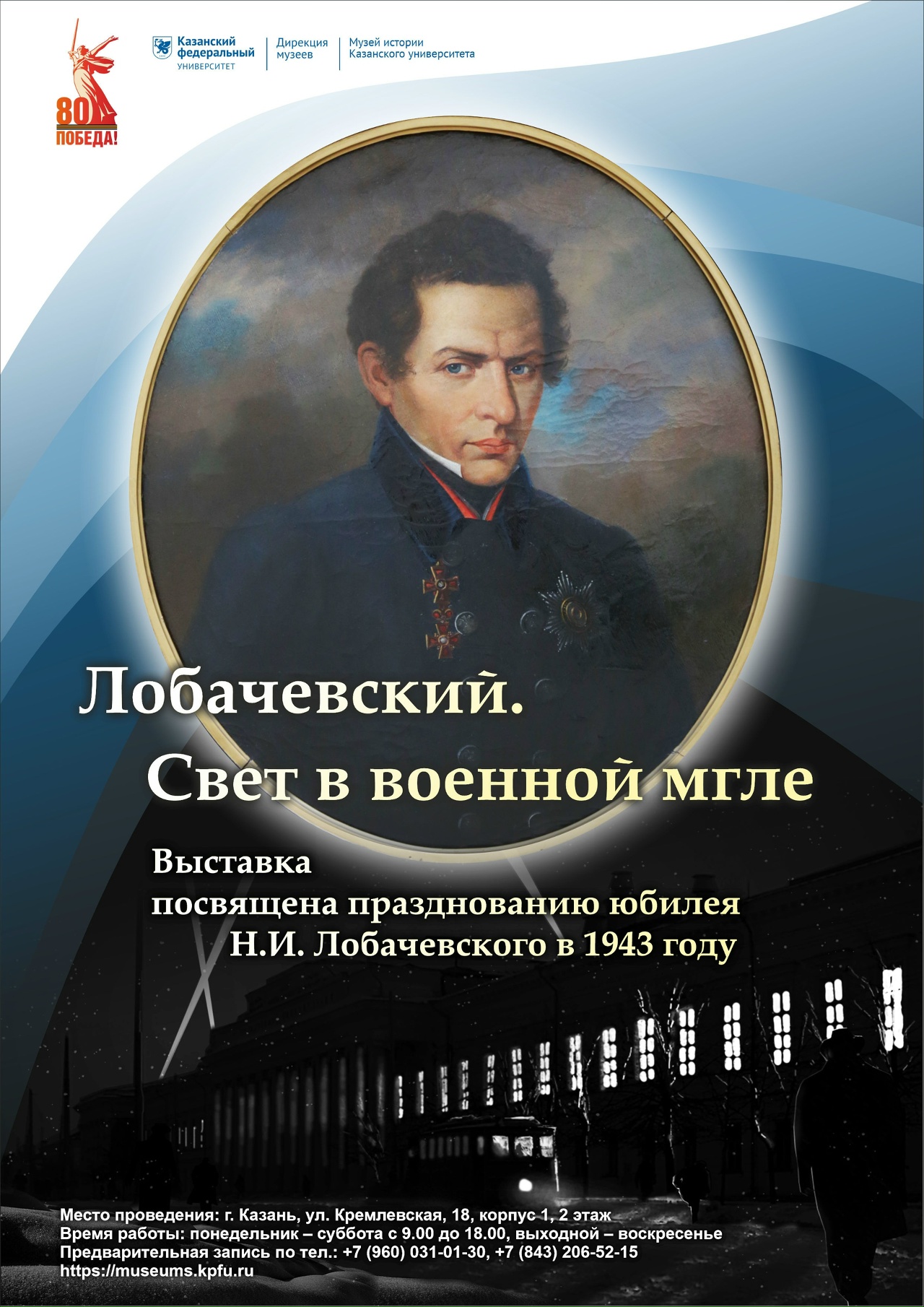 28 ноября 2025 г. в 12.00 в Предактовом зале КФУ состоится открытие выставки «Лобачевский. Свет в военной мгле» ко дню рождения Н.И. Лобачевского (1792-1856) и вручению Международной премии имени Н.И. Лобачевского «за выдающиеся работы в области фундаментальной и прикладной математики». Экспозиция посвящена еще одному событию – празднованию в Казанском университете 150-летия со дня рождения этого выдающегося ученого и ректора. Тогда в 1943 году считалось, что Лобачевский родился в 1793 году, сведения о годе и месте рождения ученого были противоречивы.