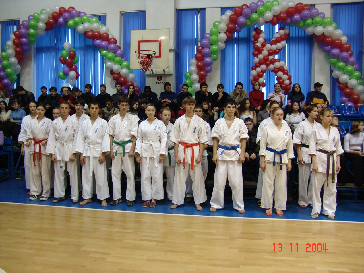 13 ноября в Большом портивном зале спорткомплекса УНИКС состоялся спортивный праздник. Вход свободный. Все трибуны заполнены. Как говорится - яблоку негде упасть.
