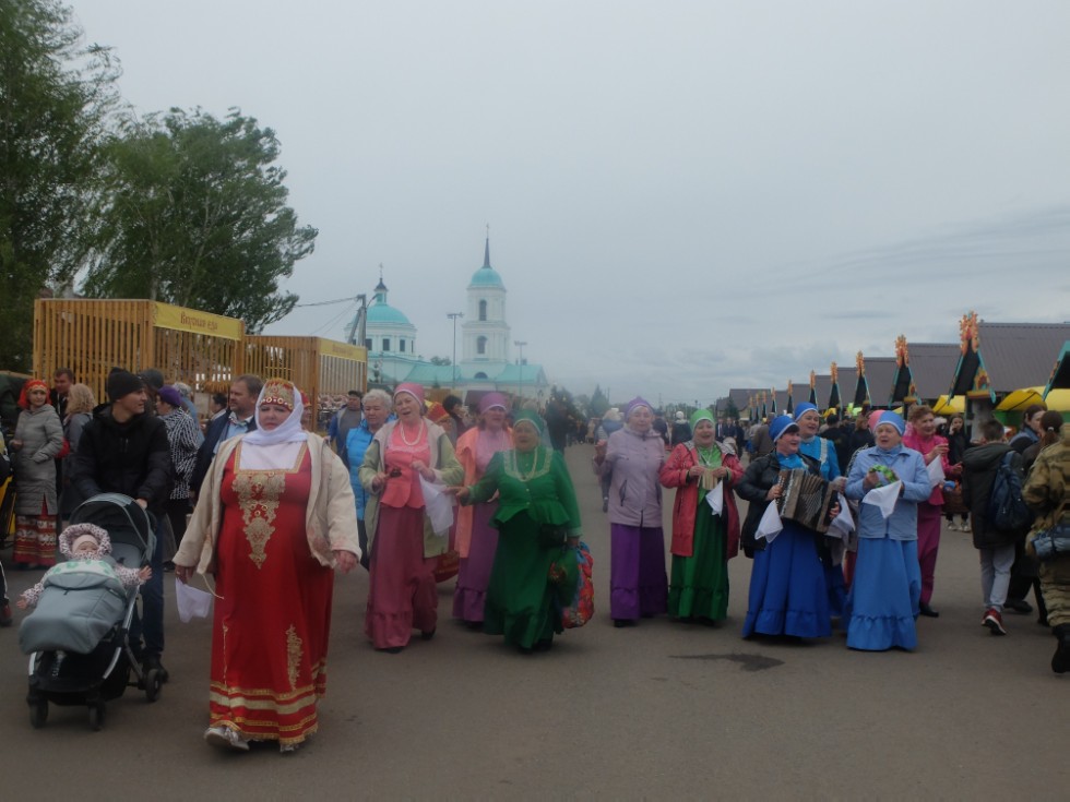 Моросящий дождь, переходящий в приличный ливень и снова в легкую морось, не испортил настроения участников праздника, которых было несколько меньше от праздников, c летней теплой и, порой, жаркой погодой. Также работали сувенирные лавочки предпренимателей не только республики, но и регионов России.