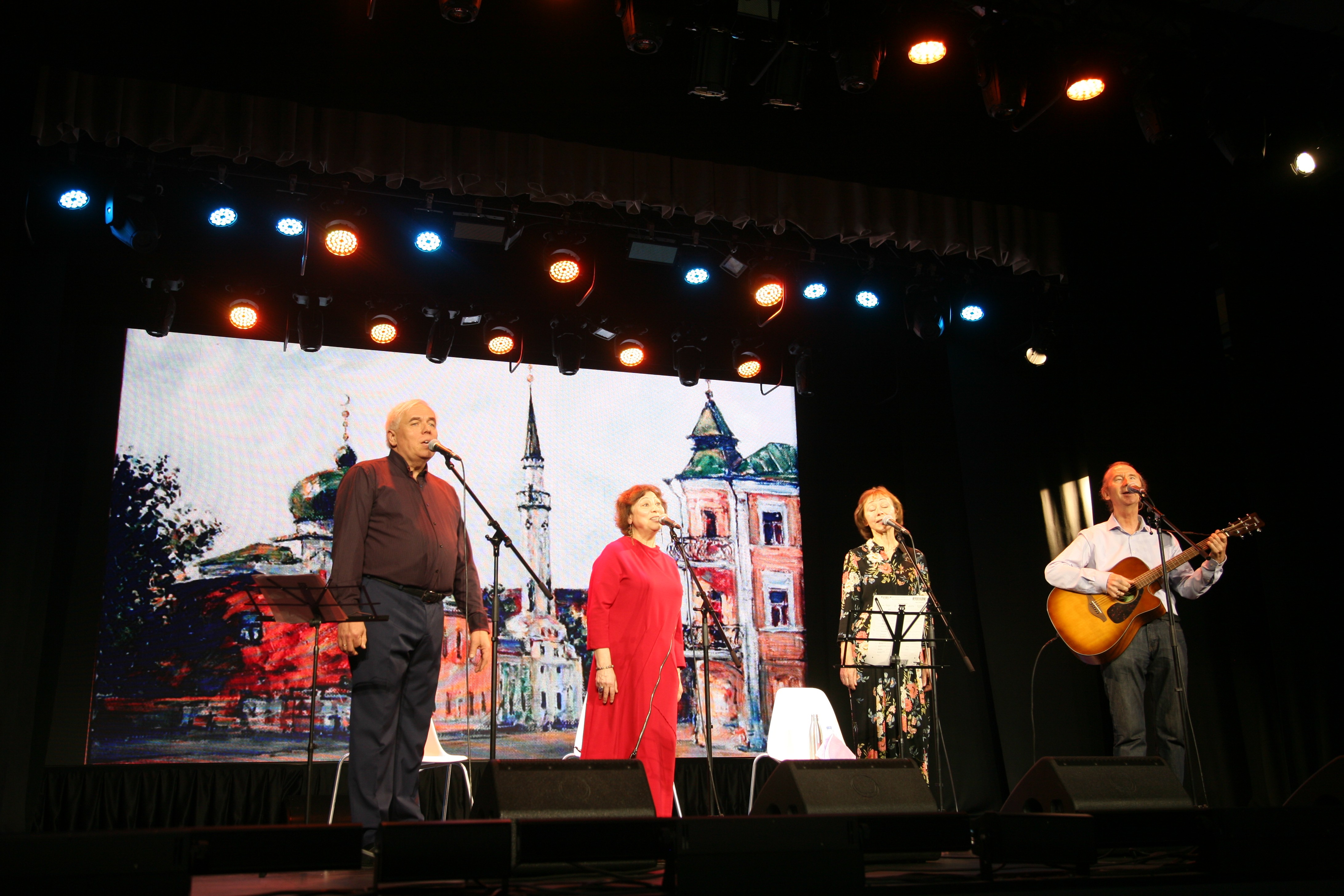 Коллектив начал свое выступление с известных песен знаменитых авторов, столпов самодеятельной песни, бардов ХХ века: Булата Окуджавы, Александра Дольского, Юрия Визбора, Сергея Никитина, и др,. Cледом зазвучали песни казанских авторов: Валерия Бокова, Дмитрия Бикчентаева, Эльмиры Галеевой, Андрея Зефирова, Виталия Харисова и др.