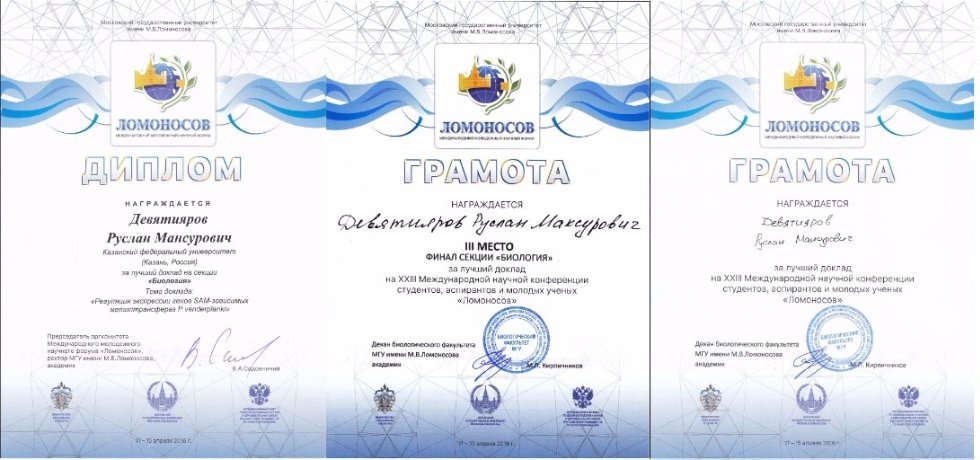 Руслан Девятияров принял участие в недавно прошедшей конференции 'Ломоносов-2016' с докладом 'Регуляция экспрессии генов SAM-зависимых метилтрансфераз P.vanderplanki' в секции молекулярная биология.