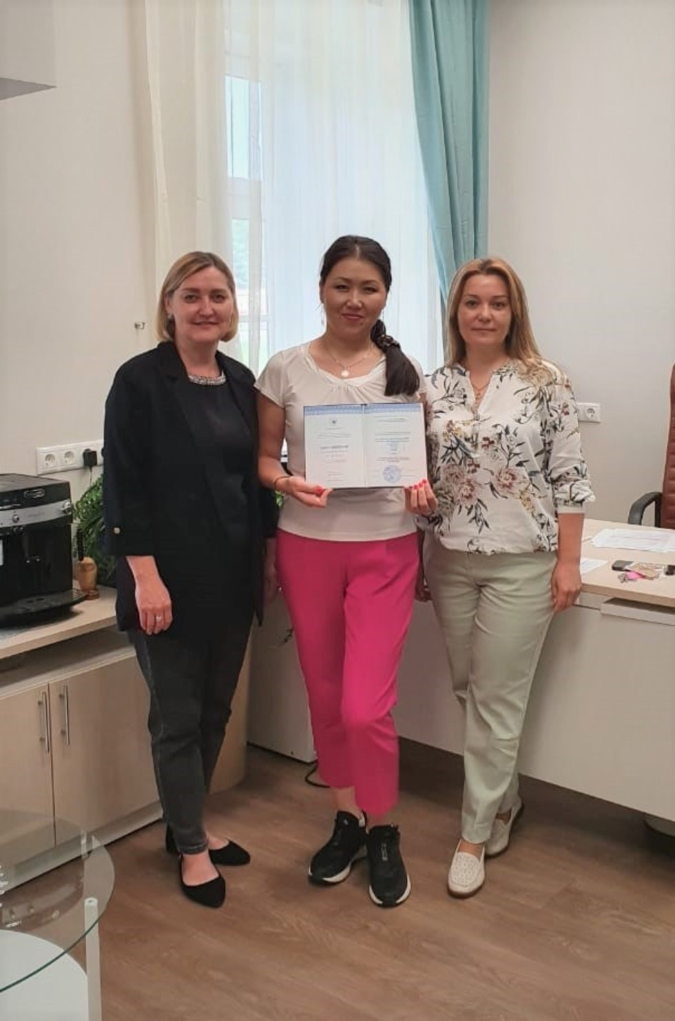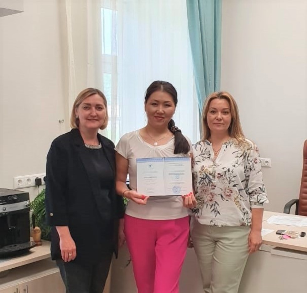 По завершению курса Мээрим Алмазбековне вручили удостоверение о повышении квалификации.