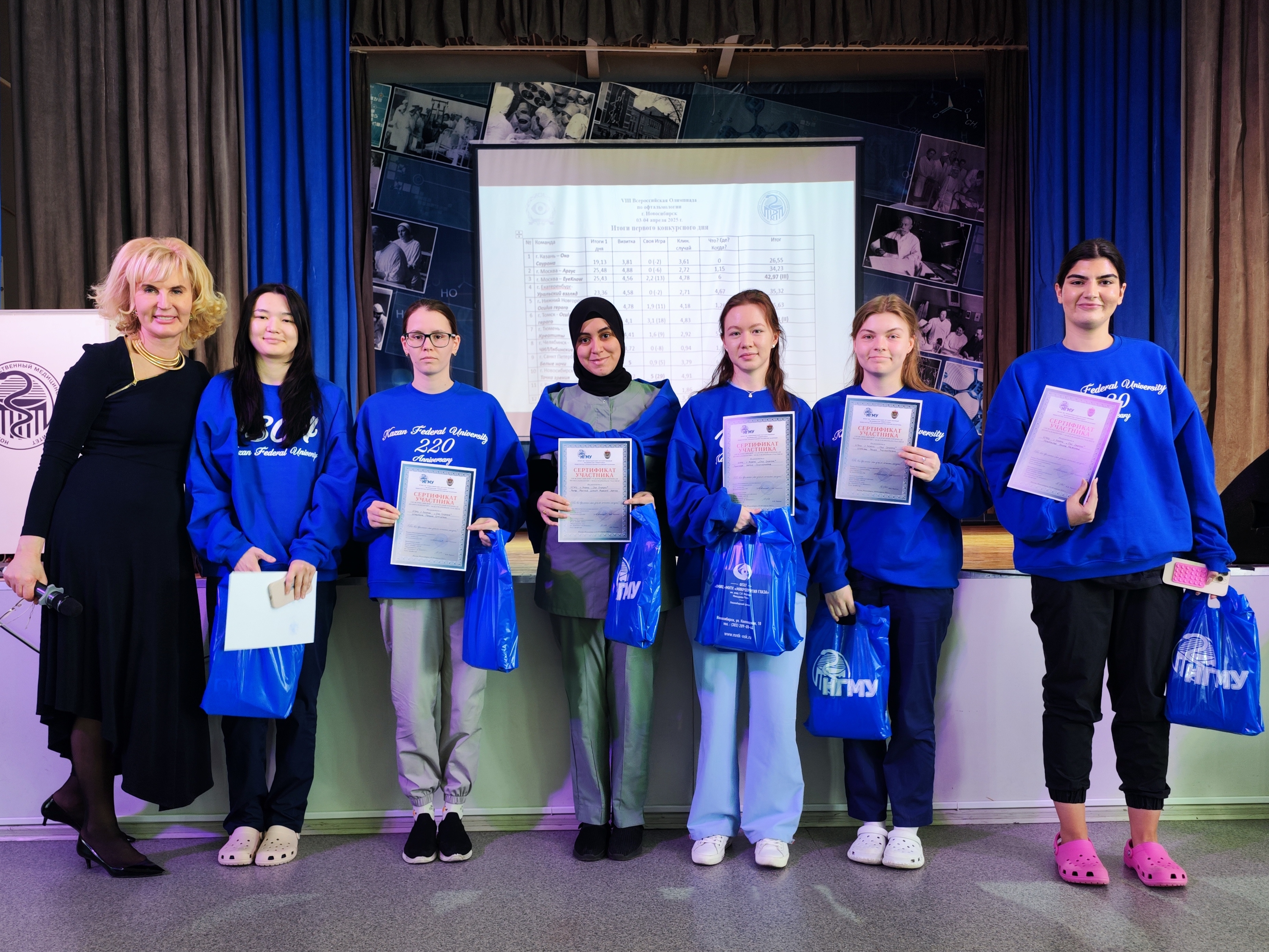 Команда КФУ в составе ординатора по специальности 31.08.59 Офтальмология Назаровой Марии и студентов специалитета по Лечебному делу Шмыриной Полины, Темрезовой Алины, Калмышевой Адели, Шарафан Арины, Марва Махмуд Шакер Мохамед Морган, под кураторством старшего преподавателя кафедры оториноларингологии и офтальмологии Идрисовой Камиллы Фаритовны приняла участие в VIII Всероссийской олимпиаде по офтальмологии с международным участием (г. Новосибирск).