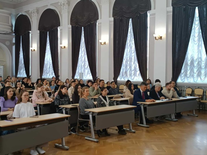 14 мая состоялась встреча Министра здравоохранения Республики Татарстан Миннуллина Марселя Мансуровича с выпускниками ординатуры и специалитета 2024 в стенах Института фундаментальной медицины и биологии. На мероприятии также присутствовали заместитель министра Фатихов И.Р., начальник отдела медицинского образования и аттестации Минздрава РТ Мухаметзянова Р.И., заместитель директора по лечебной работе и базам практик ИФМиБ Гайфуллина Р.Ф. С приветственным словом выступил и.о. директора ИФМиБ Файзуллин Р.И. В ходе встречи Марсель Мансурович обозначил основные тренды развития медицины в регионе, охарактеризовал основные преимущества мест предстоящего трудоустройства наших выпускников, ответил на все поступившие от выпускников вопросы.