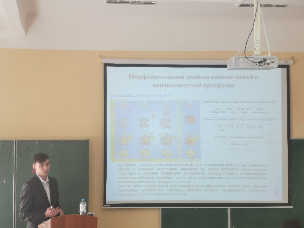 Также в конференции приняли участие аспирант Валеева Е.В. с докладом «Динамика активности экспрессии генов серотонинергической, глутаматергической системы и генов нейропластичного пути в разных моделях хронического стресса», аспирант Ибрагимов Б.Р. – «Особенности клеточной гибели моноцитов больных атопической бронхиальной астмой», аспирант Мухаметгалиева А.Р. – «Изучение механизмов ингибирования холинэстераз высокими концентрациями положительно заряженных субстратов при конкурирующей кинетике».