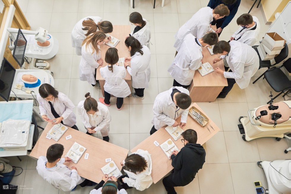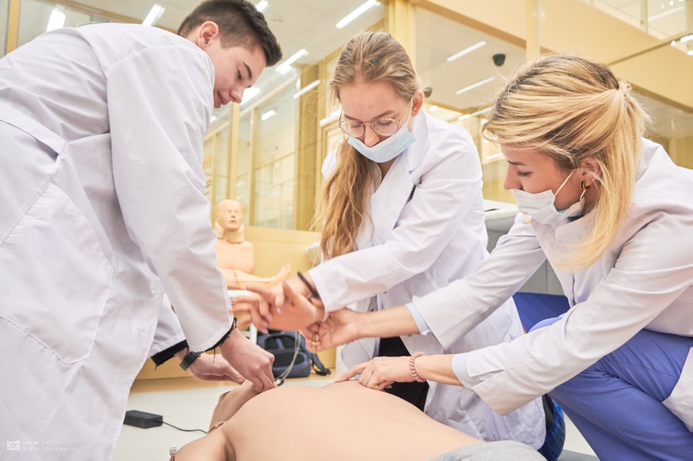 11.12.21 Химико -биологический классы лицея им. Н.И. Лобачевского посетили симуляционный центр фундаменьальной медицины. В рамках профессиональных проб, обучающиеся разделились на три группы и изучили: сердечно легочную реанимацию, хирургические швы и наложение бинтовых перевязок.