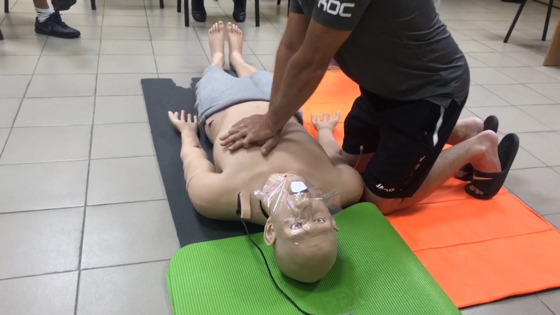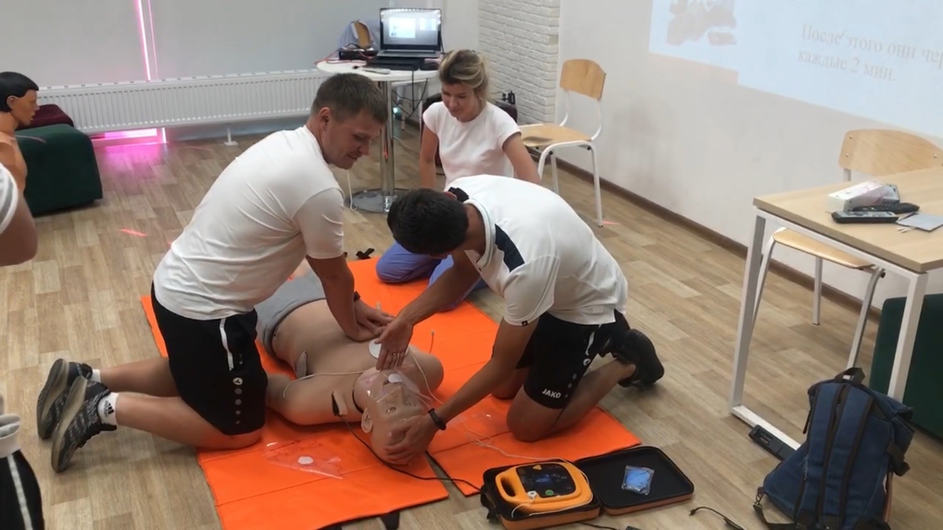 Научились четко выполнять алгоритм базовой реанимации с использованием автоматического наружного дефибрилятора ( безопасное и эффективное использование дефибрилятора, работали с различными сценариями) на манекене одним и несколькими спасателями. Также овладели навыками безопасного положения для пострадавшего и научились технике выполнения приема Хаймлиха (стоя и лежа).