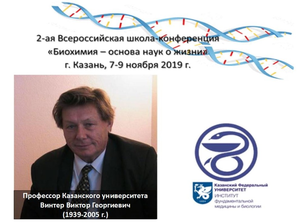 Проведение школы-конференции приурочено к 80-летнему юбилею профессора Виктора Георгиевича Винтера, который длительное время являлся заведующим кафедрой биохимии Казанского государственного университета им. В.И.Ульянова-Ленина, и, благодаря трудам которого, были заложены основные биохимические, молекулярно-генетические и фармакологические направления научных исследований, которые успешно развиваются сотрудниками кафедры и ее выпускниками во многих российских и зарубежных университетах и институтах.