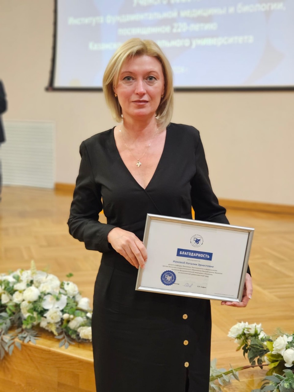 Доцент кафедры биохимии, биотехнологии и фармакологии Наталия Эрнестовна Ионова была отмечена благодарственным письмом, которое вручал лично Рияз Гатауллович Минзарипов. Награда стала признанием многолетнего добросовестного труда Наталии Эрнестовны в сфере высшего образования.