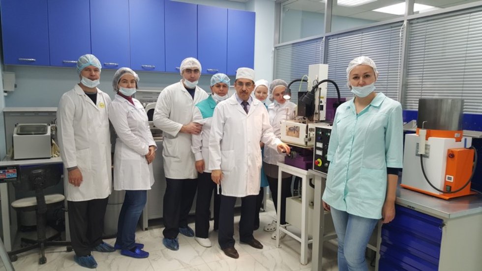 «По статистике, у 90 % пациентов, которые обращаются к врачу по поводу установки имплантатов, - говорит Раис Габбасович, - имеются неблагоприятные анатомо-топографические условия в виде атрофии альвеолярного отростка челюстей после удаления зубов. В этом направлении мы активно проводим предклинические исследования, создавая экспериментальные модели по восстановлению утраченной части гребня альвеолярного отростка с использованием клеточных технологий и тканеинженерных конструкции. Берем фракции жировой ткани, которые содержат и стволовые клетки в том числе, насыщаем ими биосовместимый остеокондуктивный материал (он представляет собой пористые гранулы из биоинертного сплава никелида-титана NITI-гран), а потом заполняем ткань дефицитных зон и создаем форму альвеолярного гребня, используя мембраны из плетеного биосовместимого материала. Через 6-8 месяцев устанавливаем в восстановленный участок альвеолярного отростка имплантат. Эти исследования мы проводим совместно с сотрудниками отдела поисковых исследований НОЦ фармацевтики КФУ и академии ветеринарной медицины».