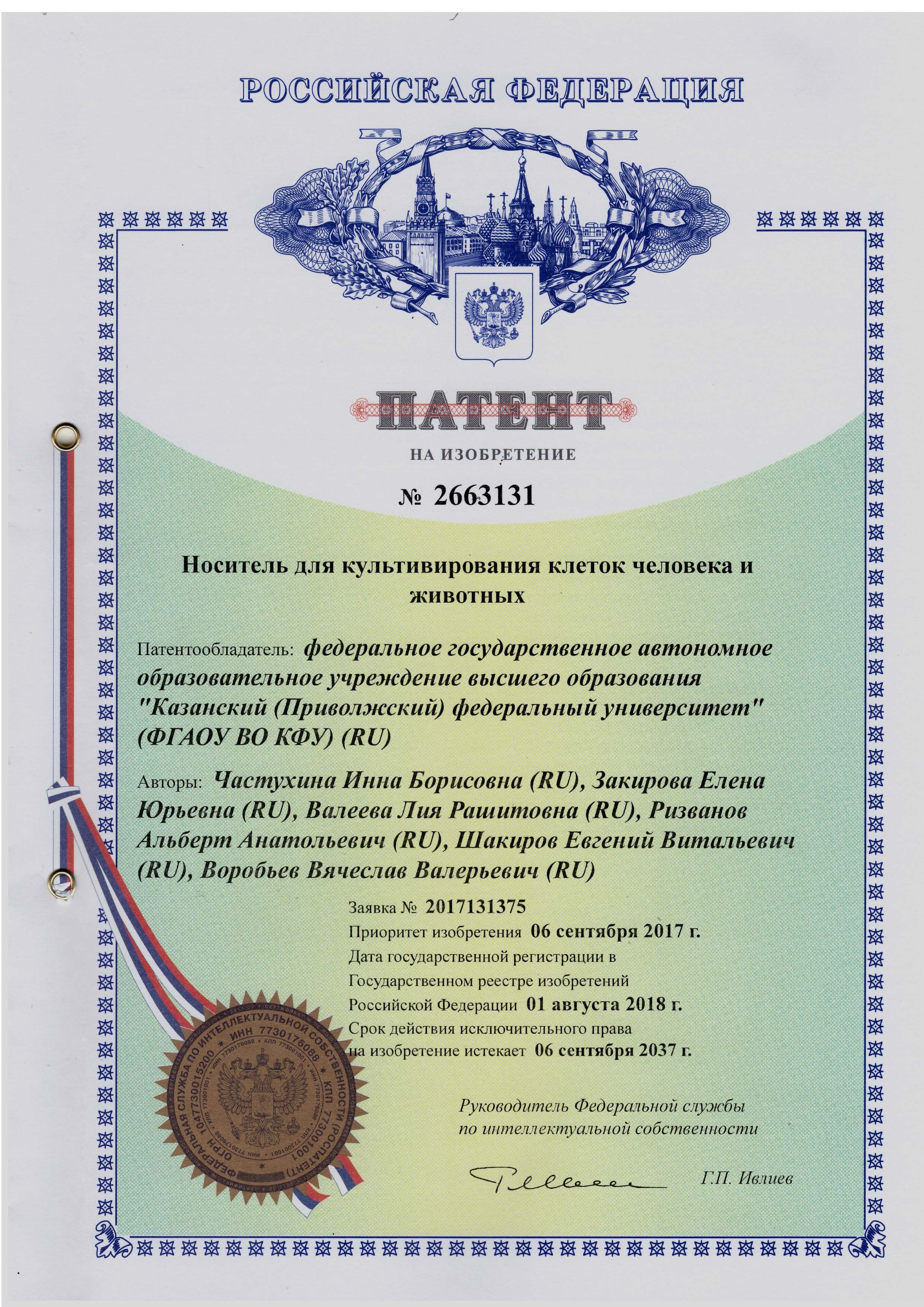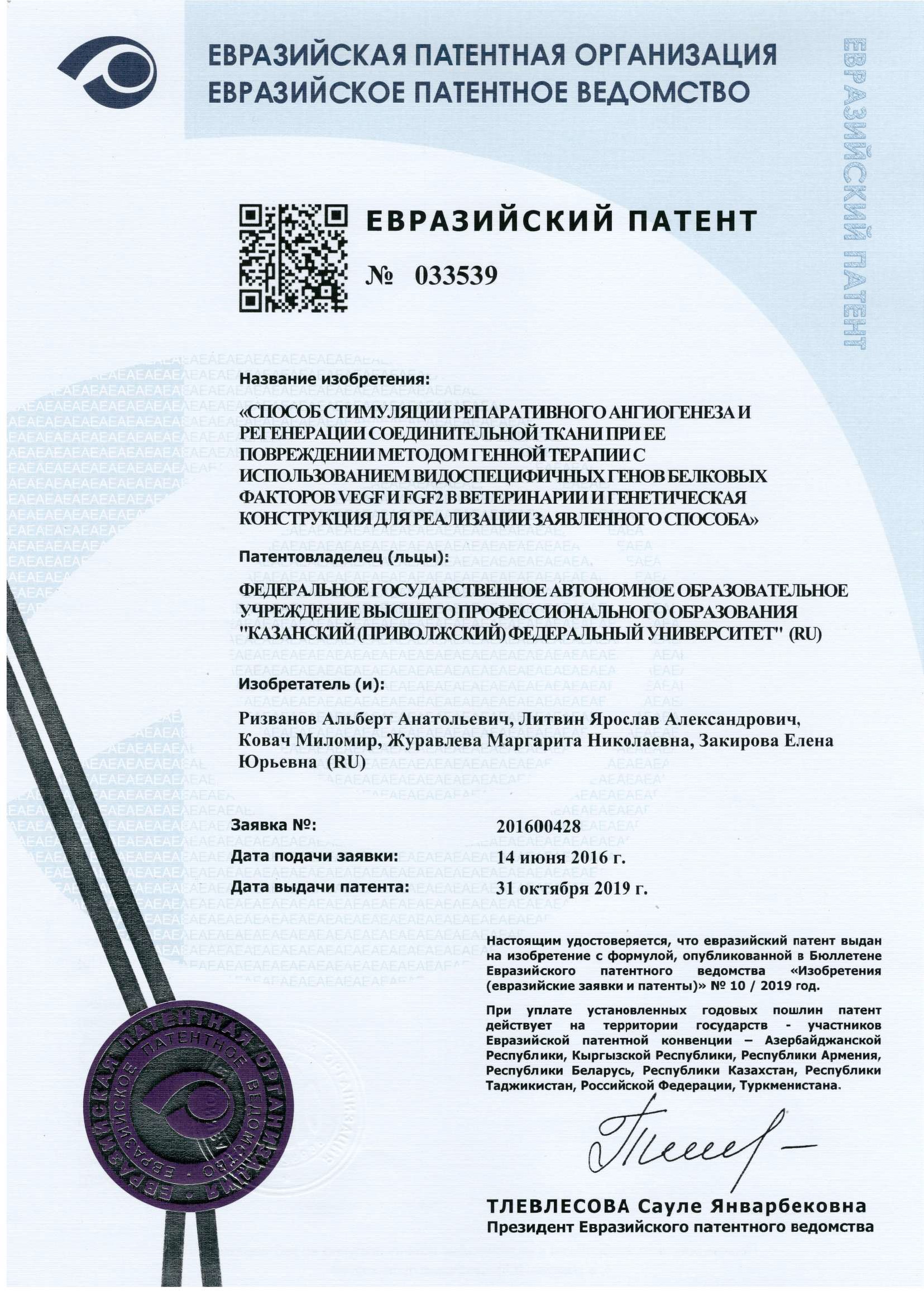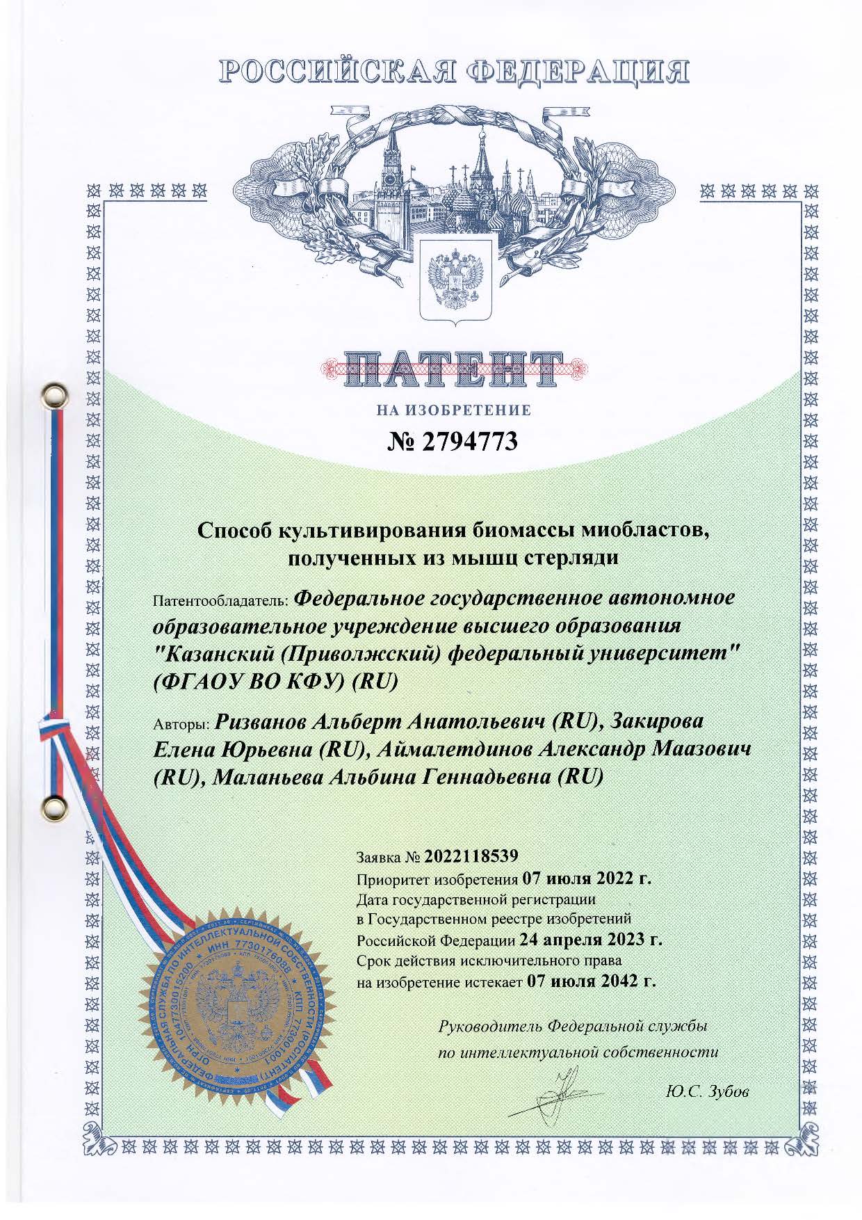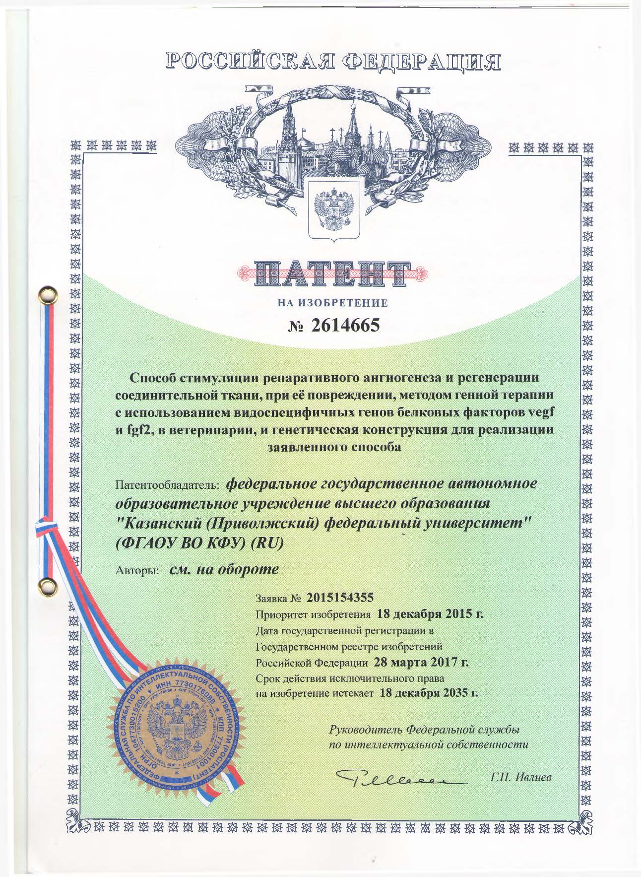 Разработки сотрудников НИЛ "Регенеративная ветеринария", защищенные патентами.