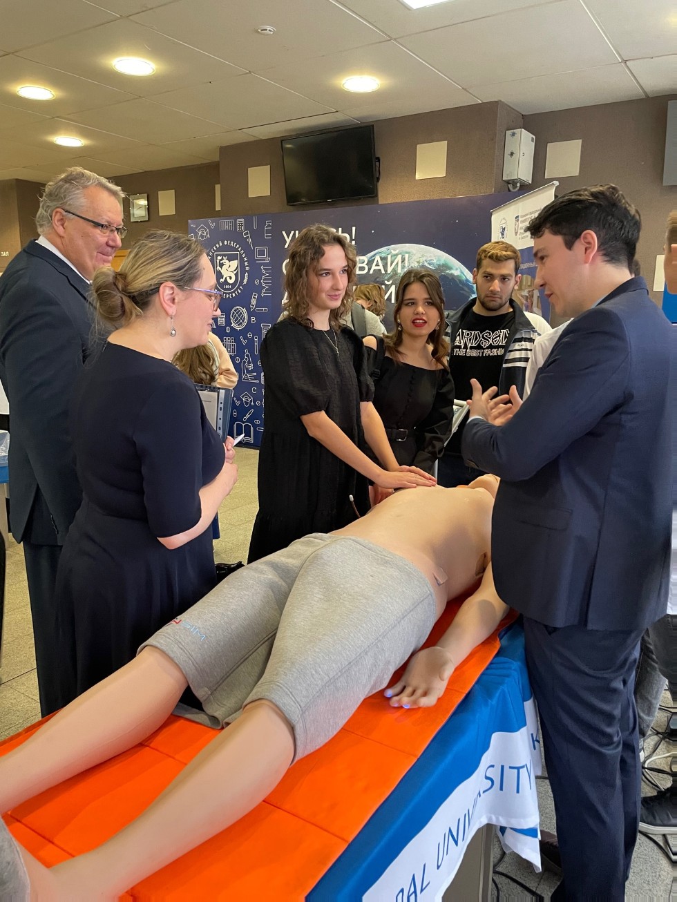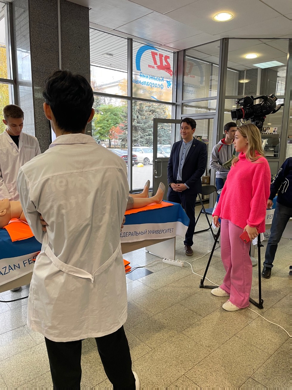 На мероприятии Институт представляли две команды от студенческого научного общества ИФМиБ. На одной из площадок разместились студенты кружка «Фармация», рядом с ними кружковцы НИЛ «Новые профессиональные компетенции по здоровьесбережению», обучавшие гостей основам оказания первой помощи и принципам сердечно-легочной реанимации.