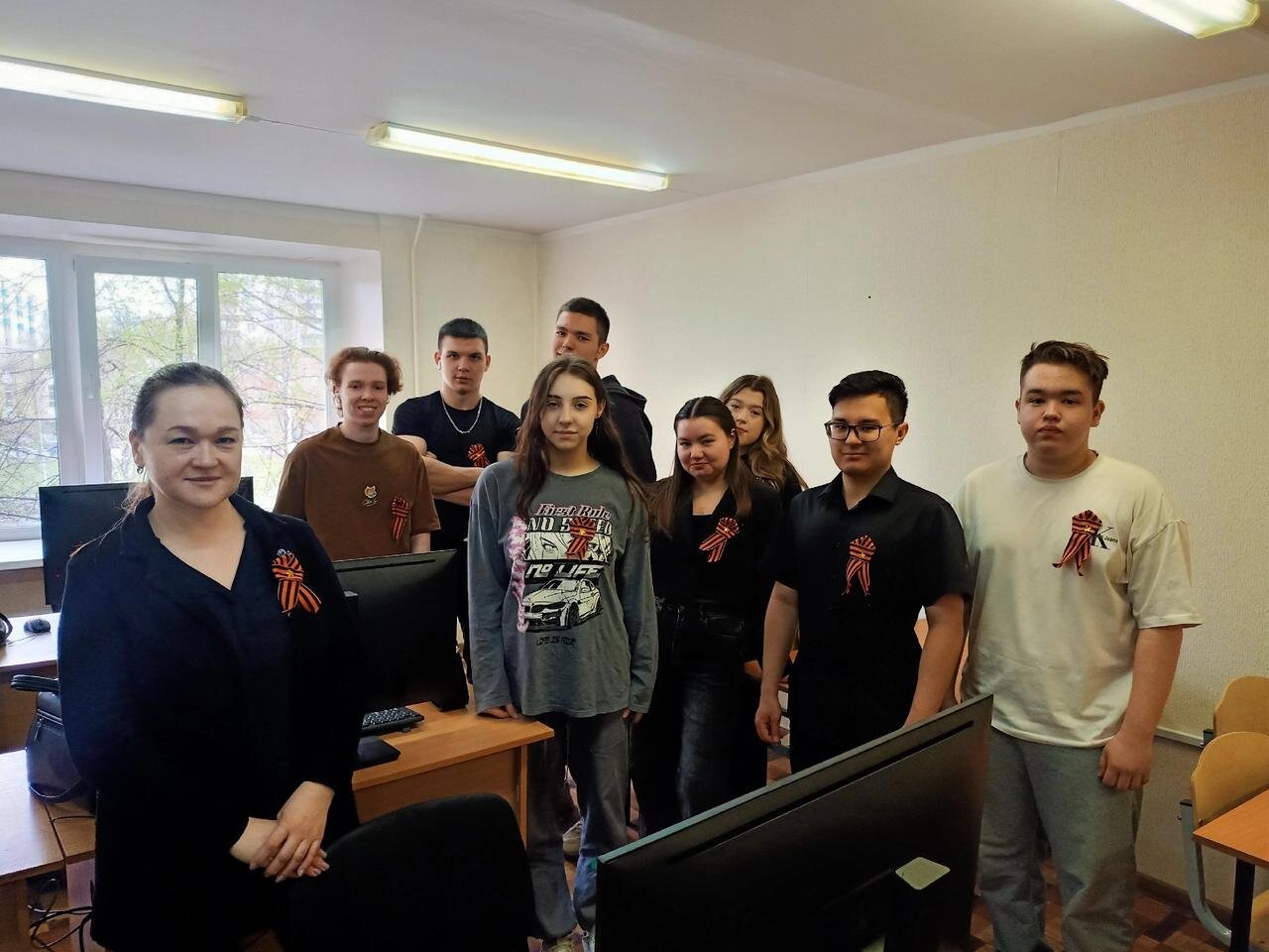 24 апреля в группах 4241123 и 4241133 прошли мастер-классы «Георгиевская лента», организованные кураторами Лией Тагировной Нурутдиновой и Айгуль Гинатулловной Файзуллиной. В ходе занятия студенты узнали о значении Георгиевской ленты как символа памяти и уважения к подвигу ветеранов, научились правильно её завязывать и познакомились с традициями её ношения в преддверии праздника.