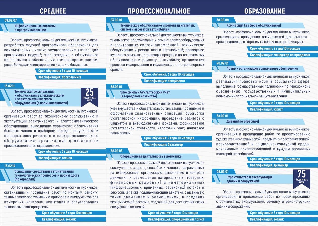 Бакалавриат, специалитет (на базе 11 класса)