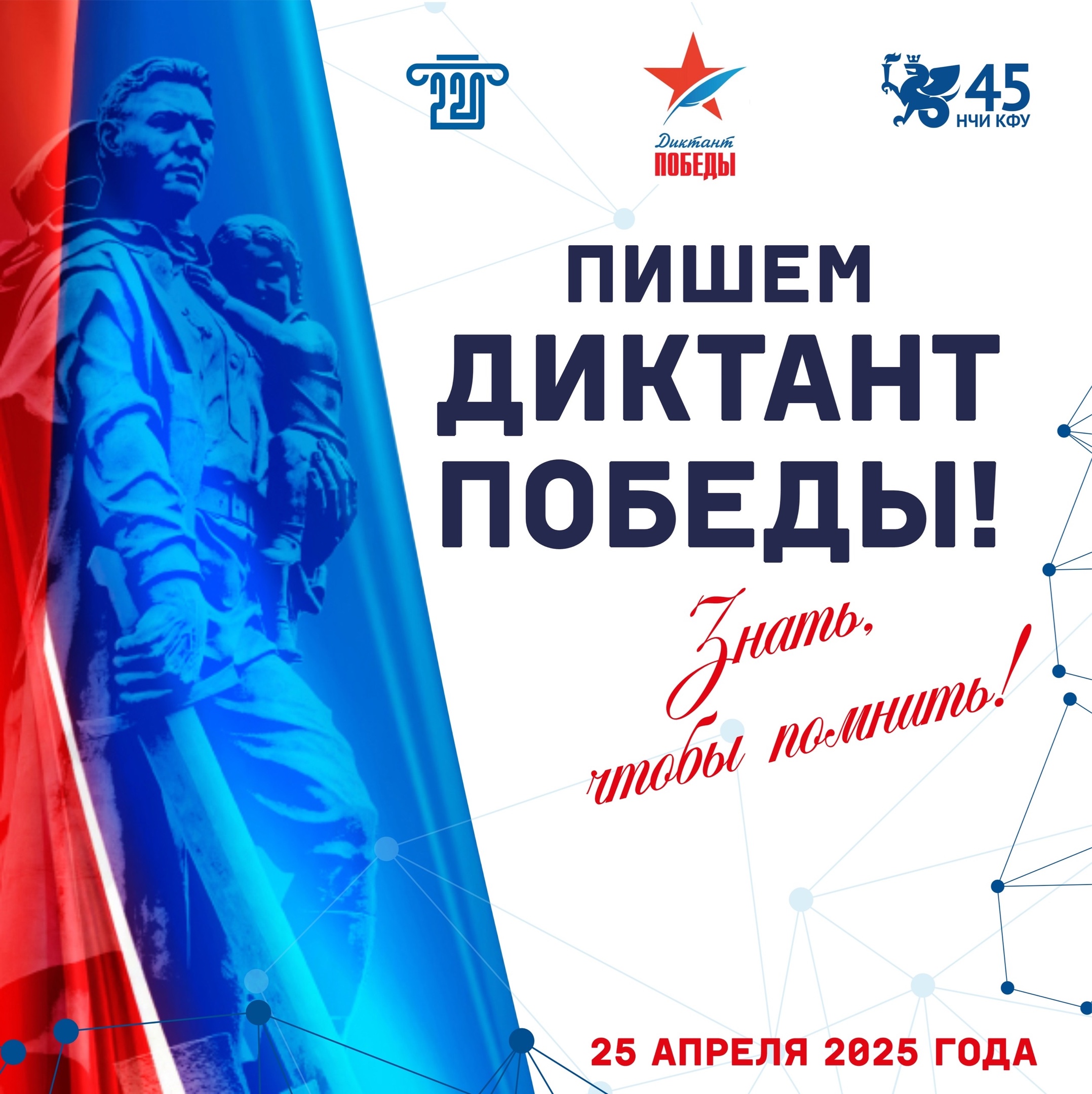 Набережночелнинский институт КФУ уже не первый год является федеральной площадкой проведения Международной акции «Диктант Победы». Участников ждут два варианта теста по 25 вопросов каждый, принять участие может любой желающий!