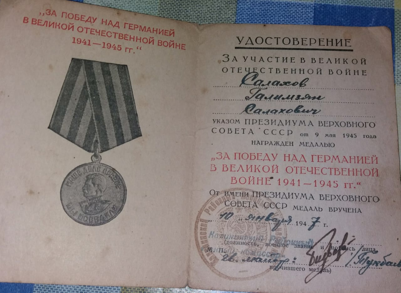 Сегодня мы хотим рассказать вам о человеке, чья жизнь стала примером истинного героизма и преданности Родине. Салахов Галимзян Салахутдинович (1910–1995) — ветеран Великой Отечественной войны, дедушки Ильнура Динаесовича Галимянова, заместителя директора по образовательной деятельности Передовой инженерной школы "Кибер Авто Тех" Набережночелнинского института КФУ.