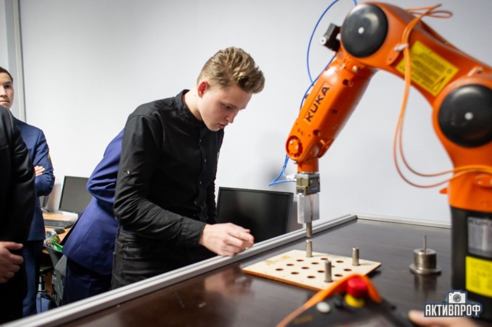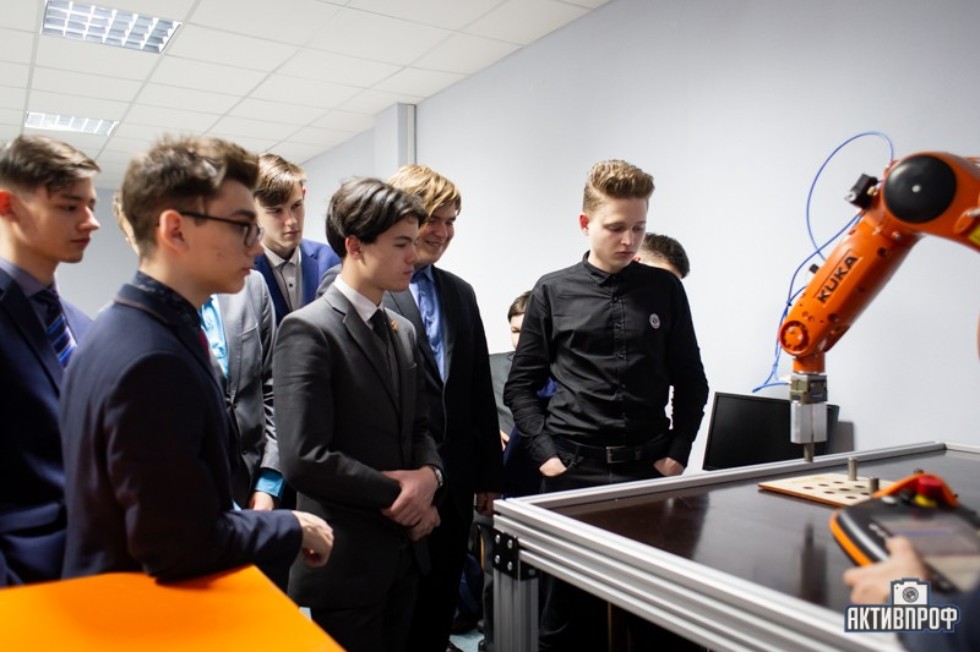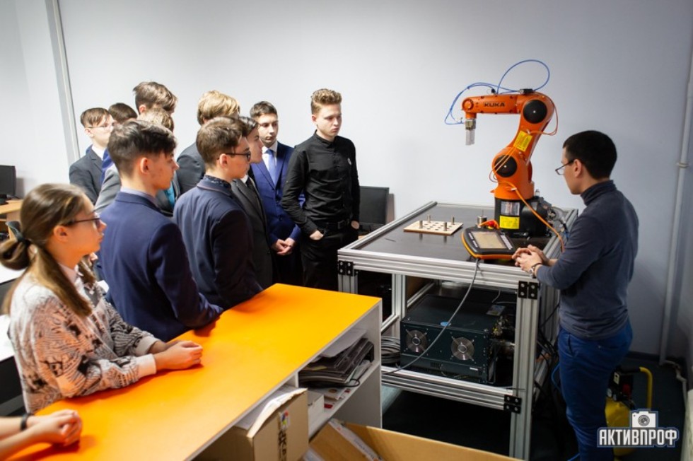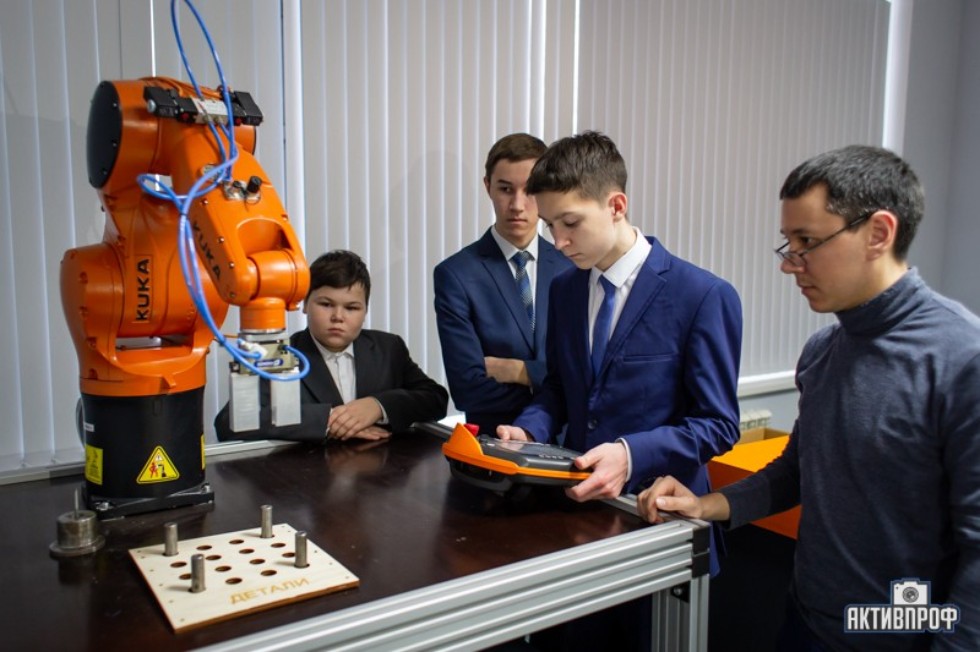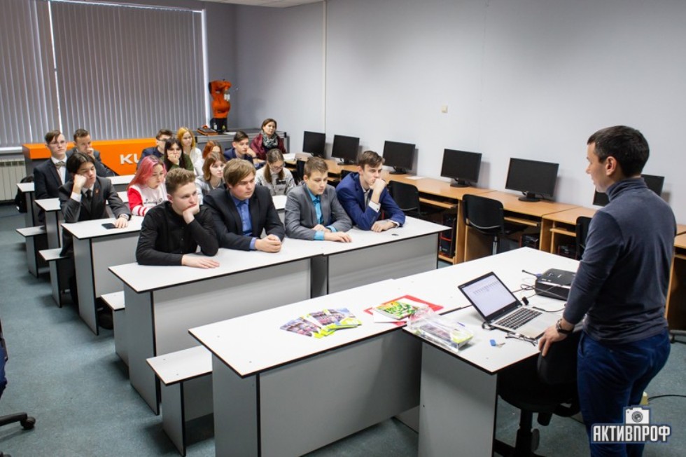Линар Юсупов провел мастер-класс по робототехнике, на котором он ознакомил школьников с принципом работы промышленного робота фирмы KUKA, и более подробно рассказал об автоматизации технического процесса и производств.