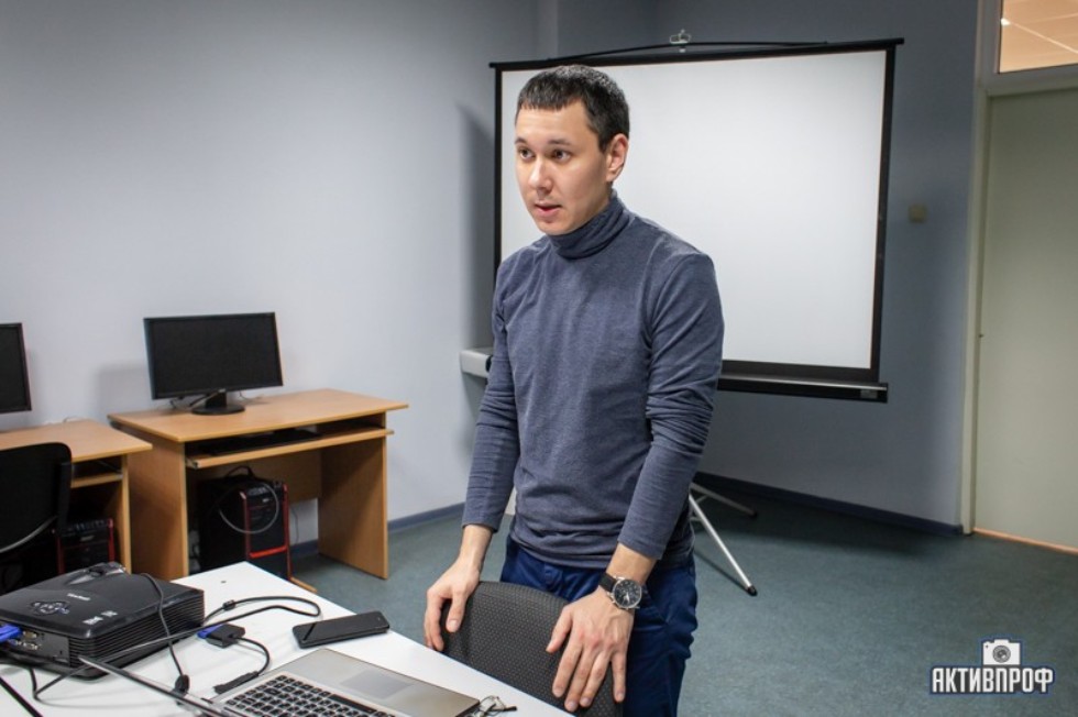Проводил занятие преподаватель Инженерно-экономического колледжа НЧИ КФУ Линар Юсупов. Он рассказал о Набережночелнинском институте КФУ, об основных инженерных специальностях вуза и колледжа и дал небольшие советы к подходу выбора профессий.
