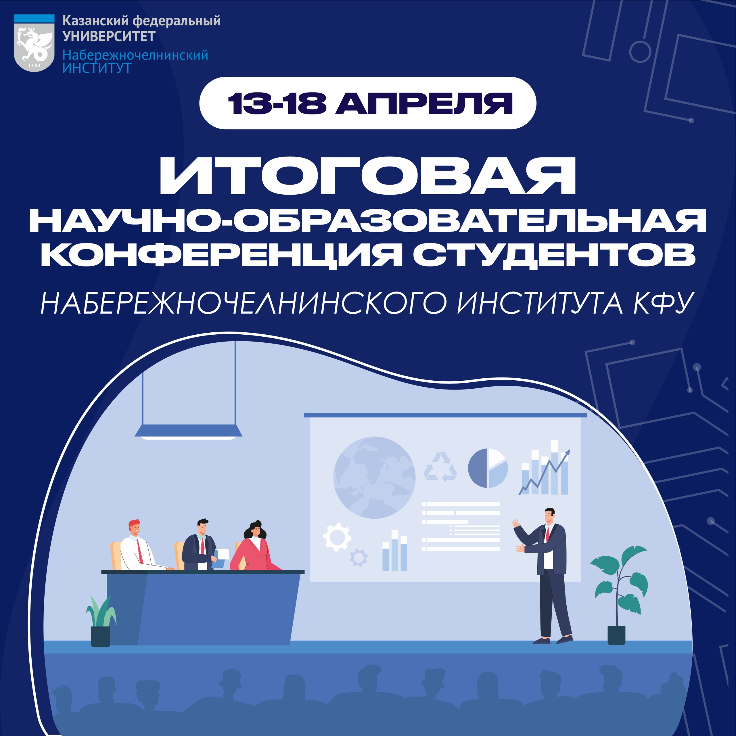 С 13 по 18 апреля Набережночелнинский институт КФУ превращается в открытую дискуссионную площадку. В программе — 15 секций, от психологии до автостроения, от лингвистики до водородной энергетики.