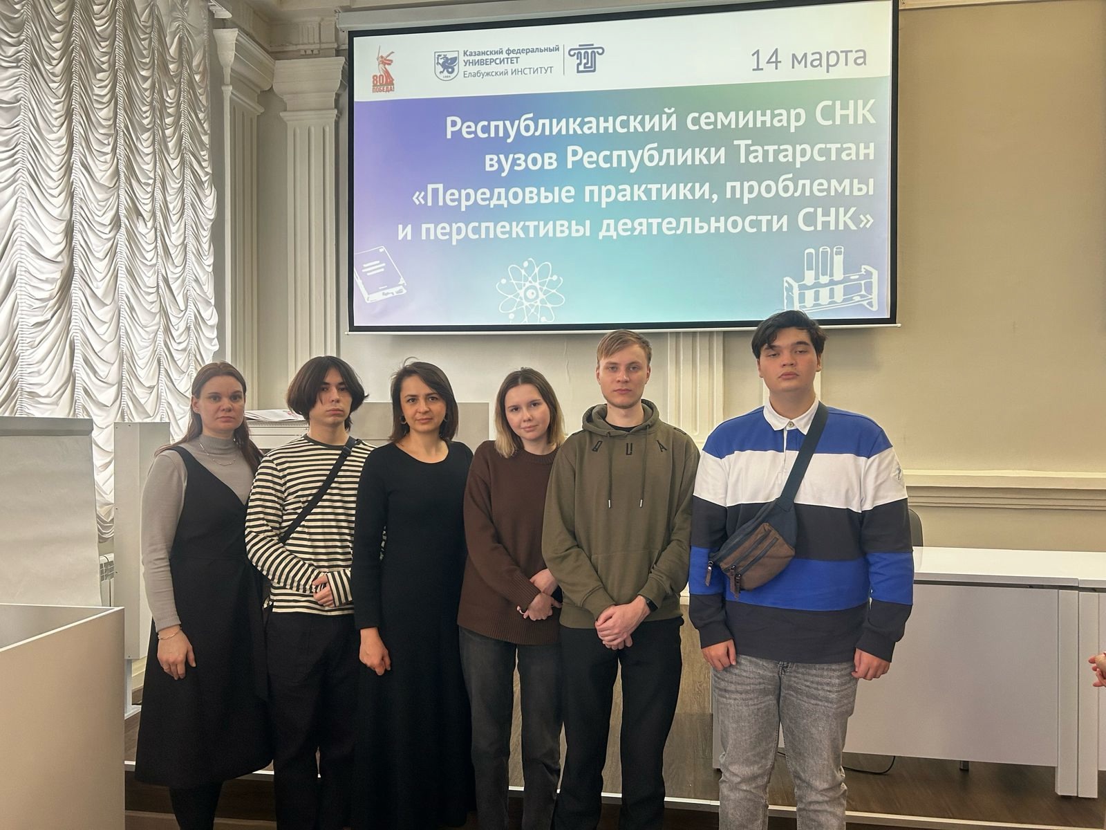 14 марта студенческие научные кружки (СНК) Набережночелнинского института КФУ — «Когнитивная психология», «Цифровая трансформация и цифровизация экономической деятельности» и «Science Up» — приняли активное участие в Республиканском семинаре СНК вузов Республики Татарстан «Передовые практики, проблемы и перспективы деятельности СНК». Мероприятие проходило в Елабужском институте КФУ и объединило лучшие умы студенческой науки!