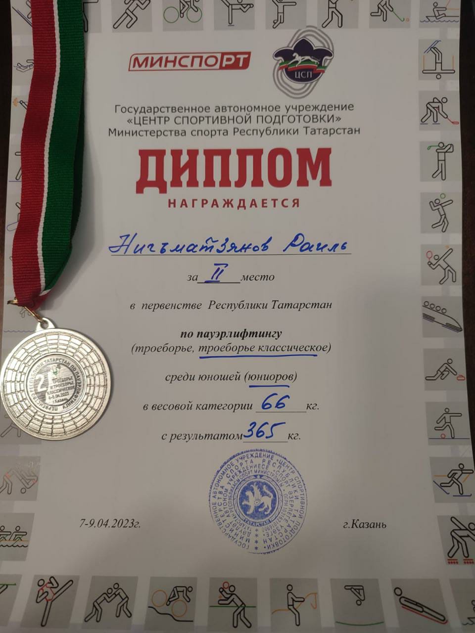 С 7 по 9 апреля в городе Казань прошло Первенство Республики Татарстан по пауэрлифтингу среди юниоров (классическое троеборье).