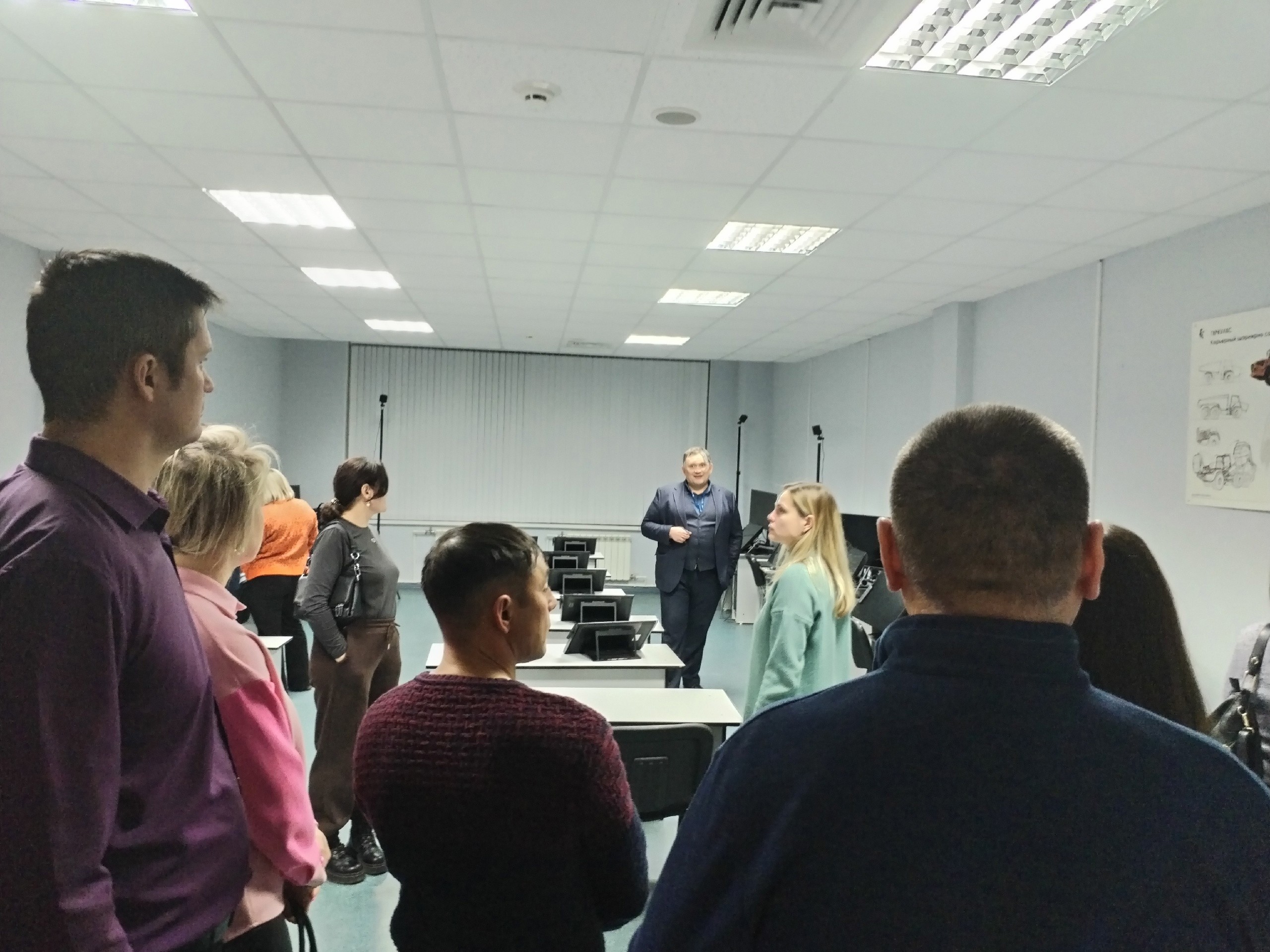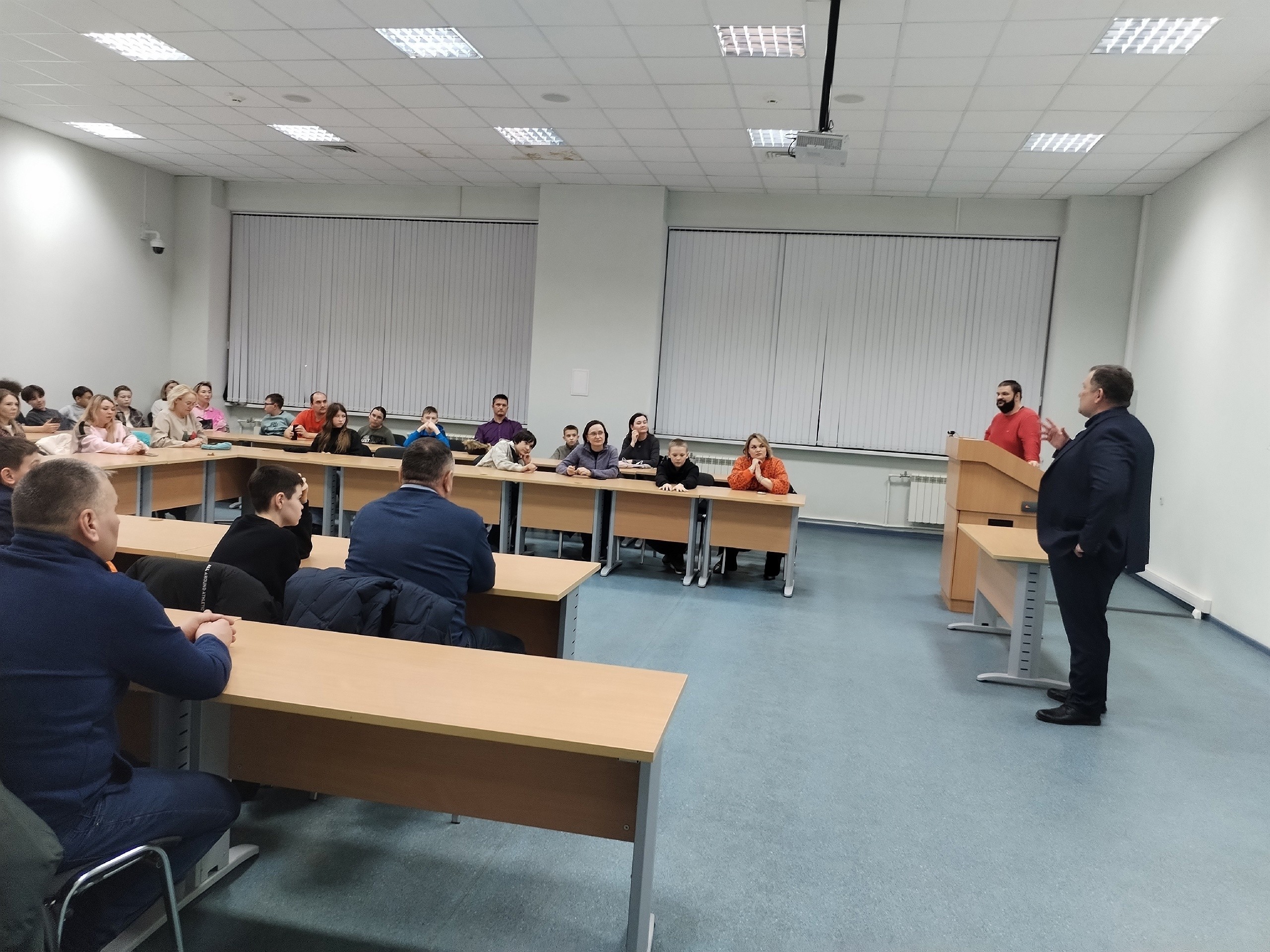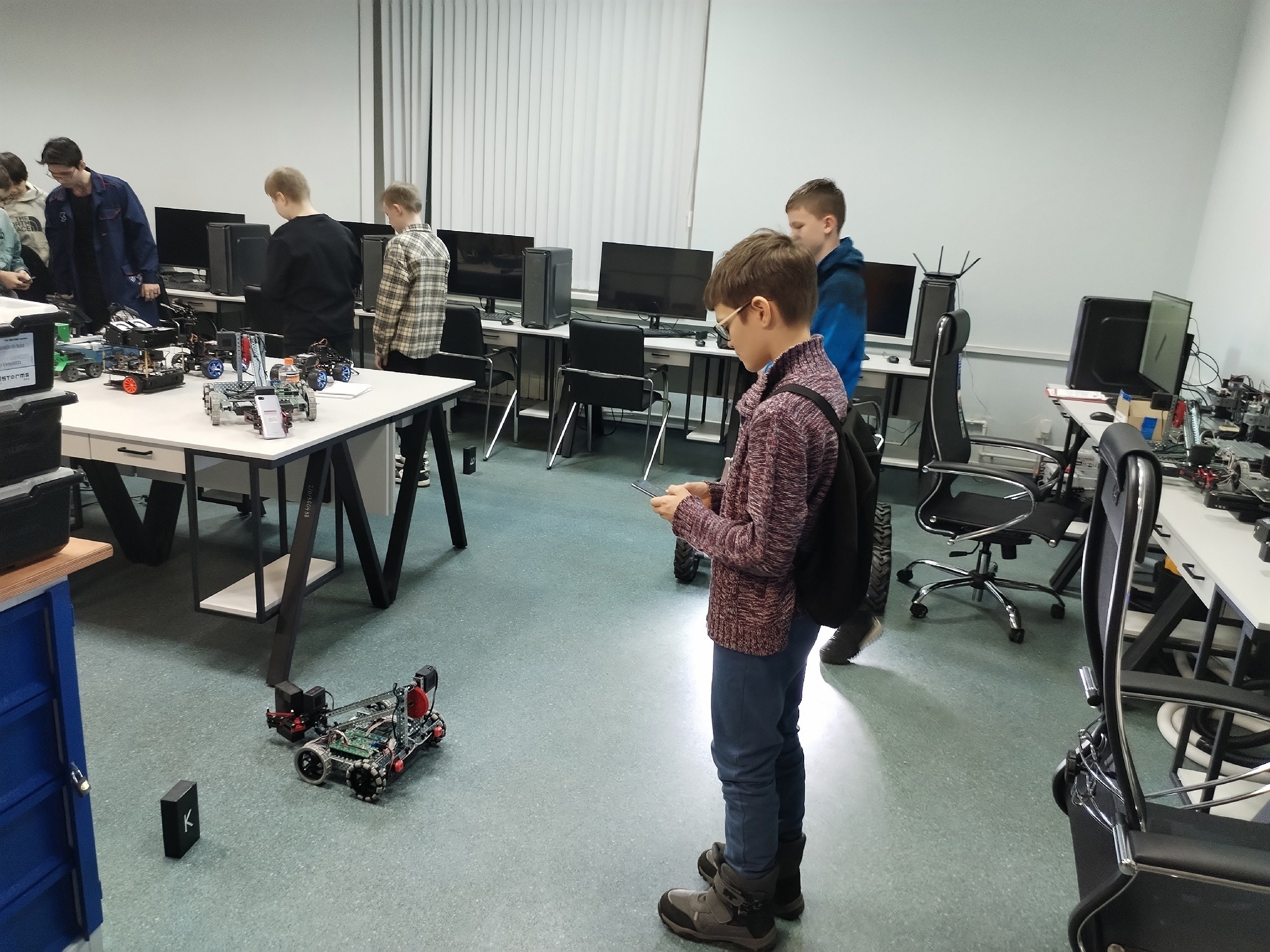 Гостей разделили на две группы. Пока школьники погружались в мир науки, технологий и робототехники, пробовали себя в роли водителей и знакомились с лабораториями Передовой инженерной школы «Кибер Авто Тех», родители участвовали во встрече с заместителем директора по воспитательной и социальной работе Валерием Леонидовичем Гусевым.