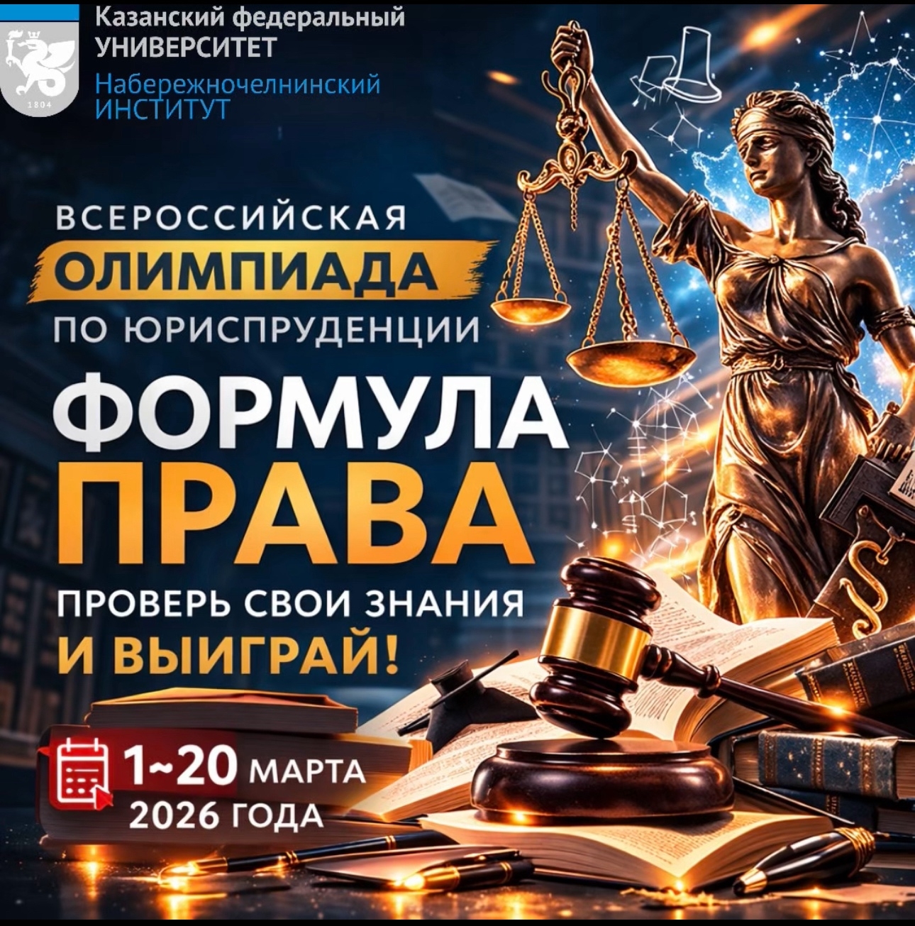 Инженерно-экономический колледж совместно с кафедрой юридических дисциплин Набережночелнинского института Казанского федерального университета приглашает студентов колледжей всей России принять участие во Всероссийской олимпиаде «Формула Права».