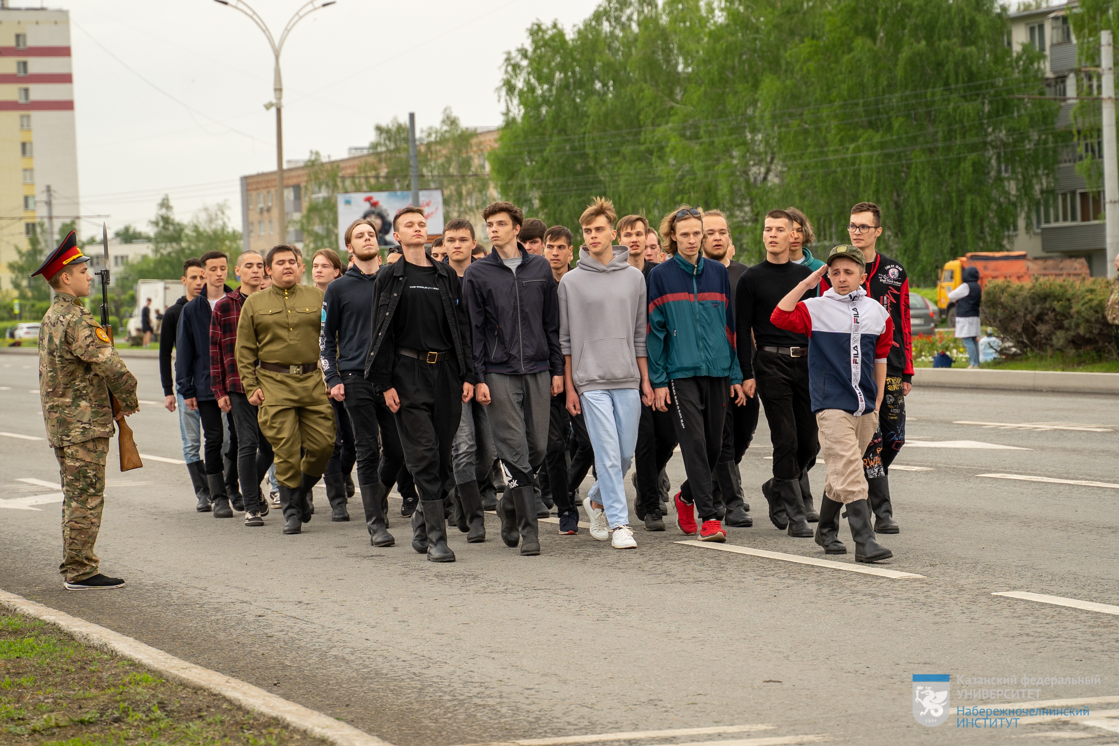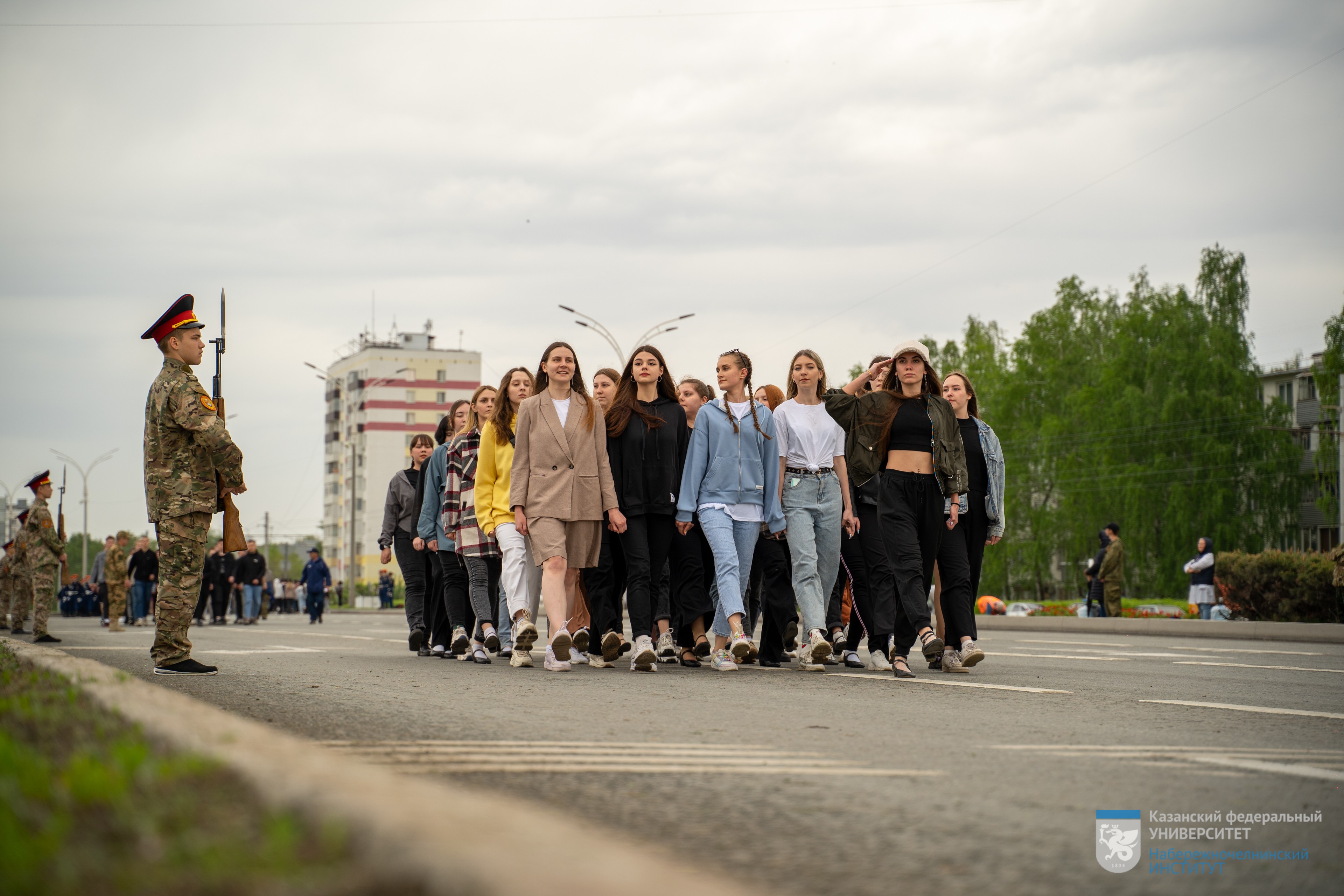 4 мая студенты Набережночелнинского института КФУ приняли участие в репетиции Парада Победы, который традиционно состоится 9 мая у мемориала «Родина-Мать». Ребята на протяжении нескольких лет принимают участие в городском праздновании Дня Победы, маршируя в «коробках», отдавая дань памяти и благодарности воинам-защитникам и труженикам тыла.