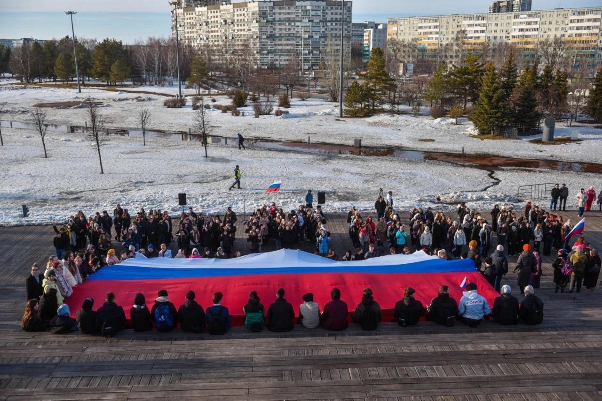 На площади Азатлык собрались люди разных поколений, чтобы вместе растянуть огромный российский флаг. Это зрелище стало настоящим символом единства и гордости за нашу страну.