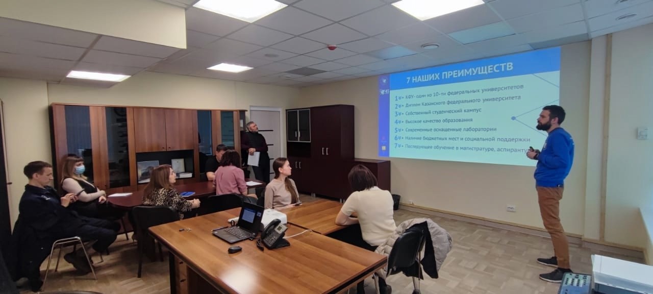 Ответственный секретарь приёмной комиссии Набережночелнинского института КФУ Александр Егоров подробно рассказал родителям об основных правилах приема, сроках подачи документов, необходимых ЕГЭ, проходных баллах, а также о бюджетных местах и стипендиях. Он рассказал, что ОАО «РИАТ» заинтересовано в подготовке кадров в Набережночелнинском институте КФУ.