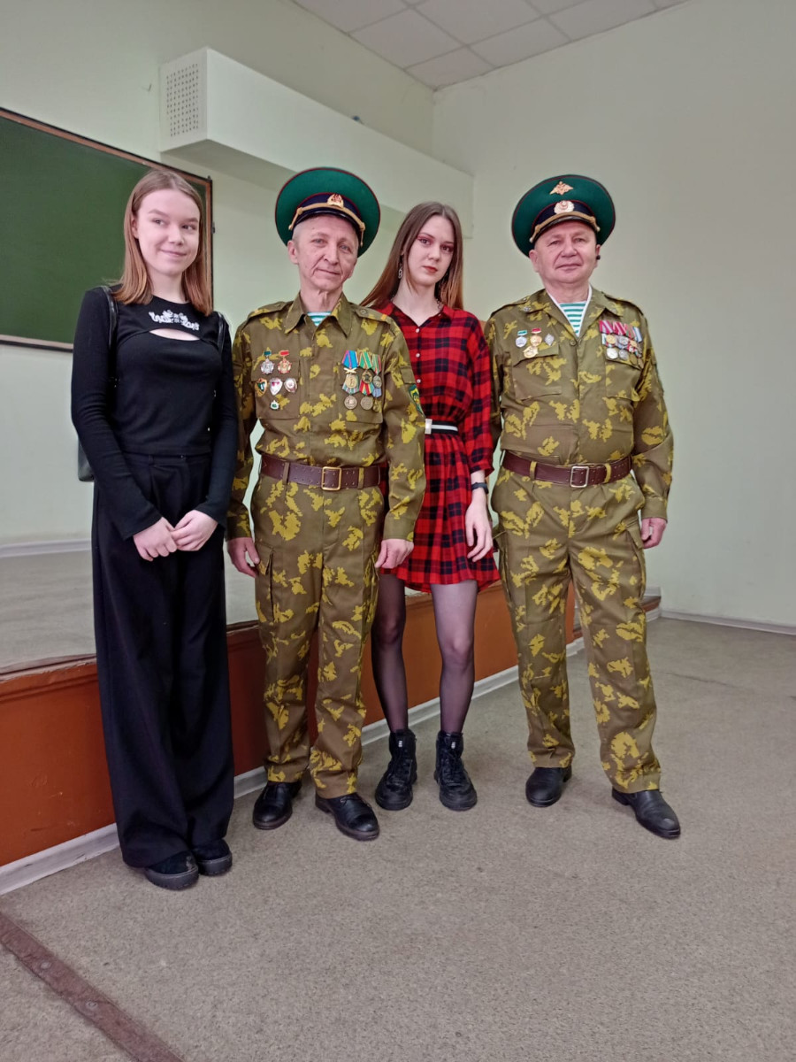 Студенты колледжа побывали на уроке мужества, который провели пограничники Общественной организации Патриотического объединения ветеранов и участники боевых действий пограничной службы "Челны-Рубеж" Усеинов Ахияр Серверович и Ткачёв Андрей Владимирович.