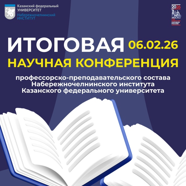 Приглашаем вас принять участие в Итоговой научной конференции профессорско-преподавательского состава, которая состоится 6 февраля 2026 года в Набережночелнинском институте КФУ.