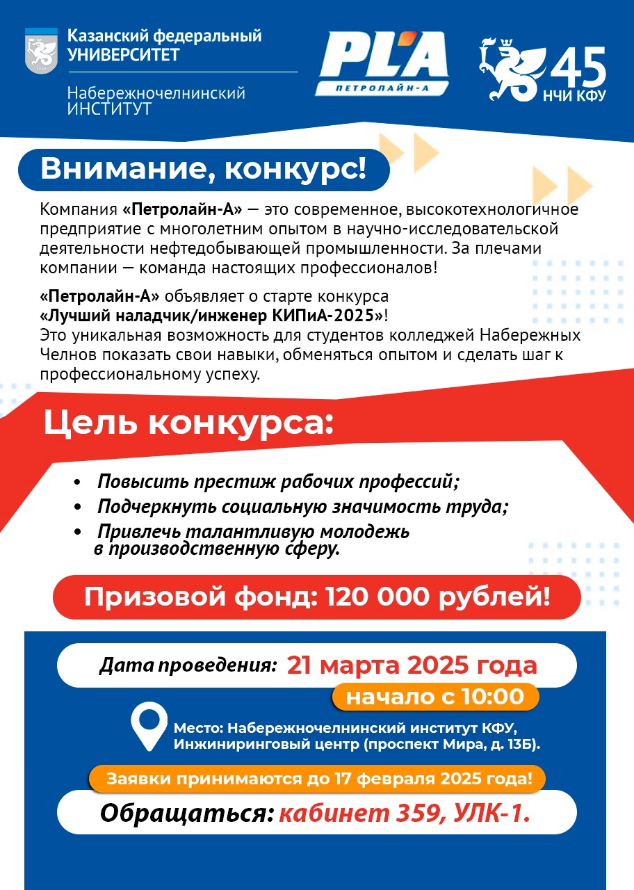 Место: Набережночелнинский институт КФУ, Инжиниринговый центр (проспект Мира, д.13Б).