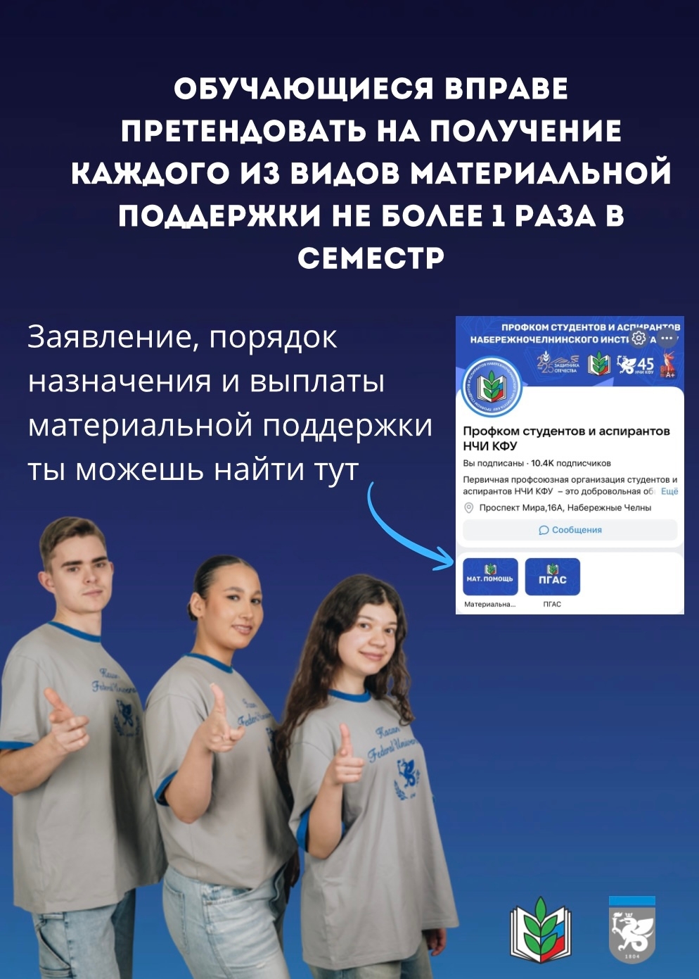 Обучающиеся "бюджетники" вправе претендовать на получение каждого из видов материальной поддержки не более 1 раза в семестр.