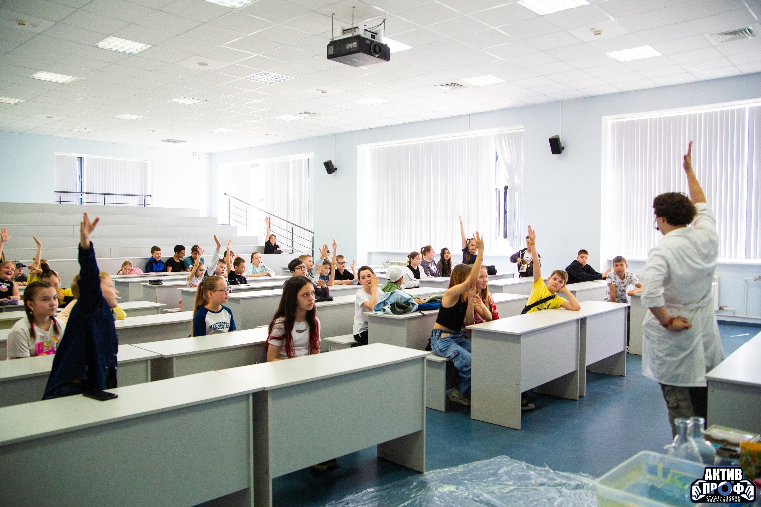 После награждения ребят ждал яркий сюрприз — научное шоу профессора Николя. Эффектные эксперименты, дым, вспышки и восторженные глаза — финал получился по-настоящему волшебным.