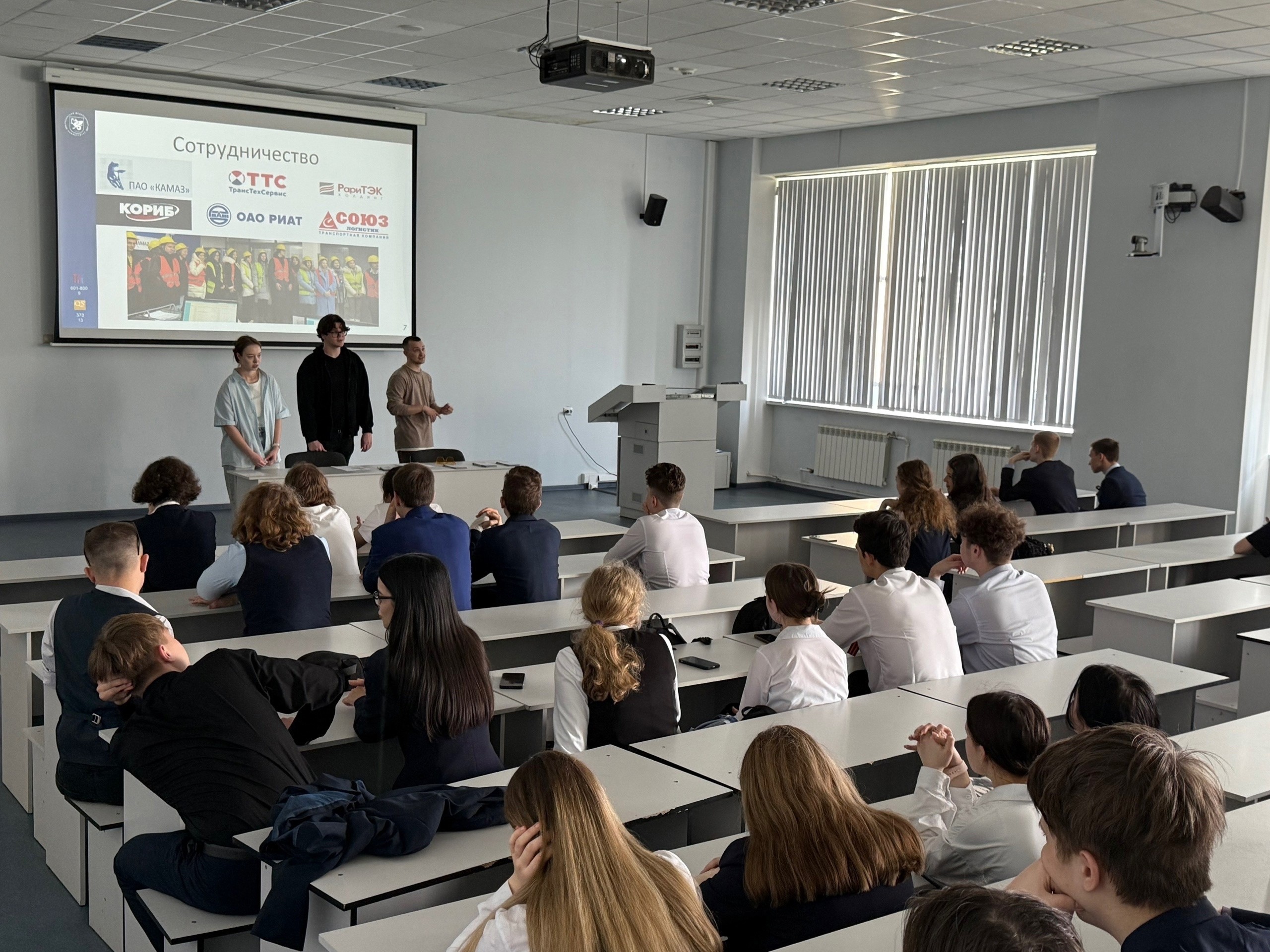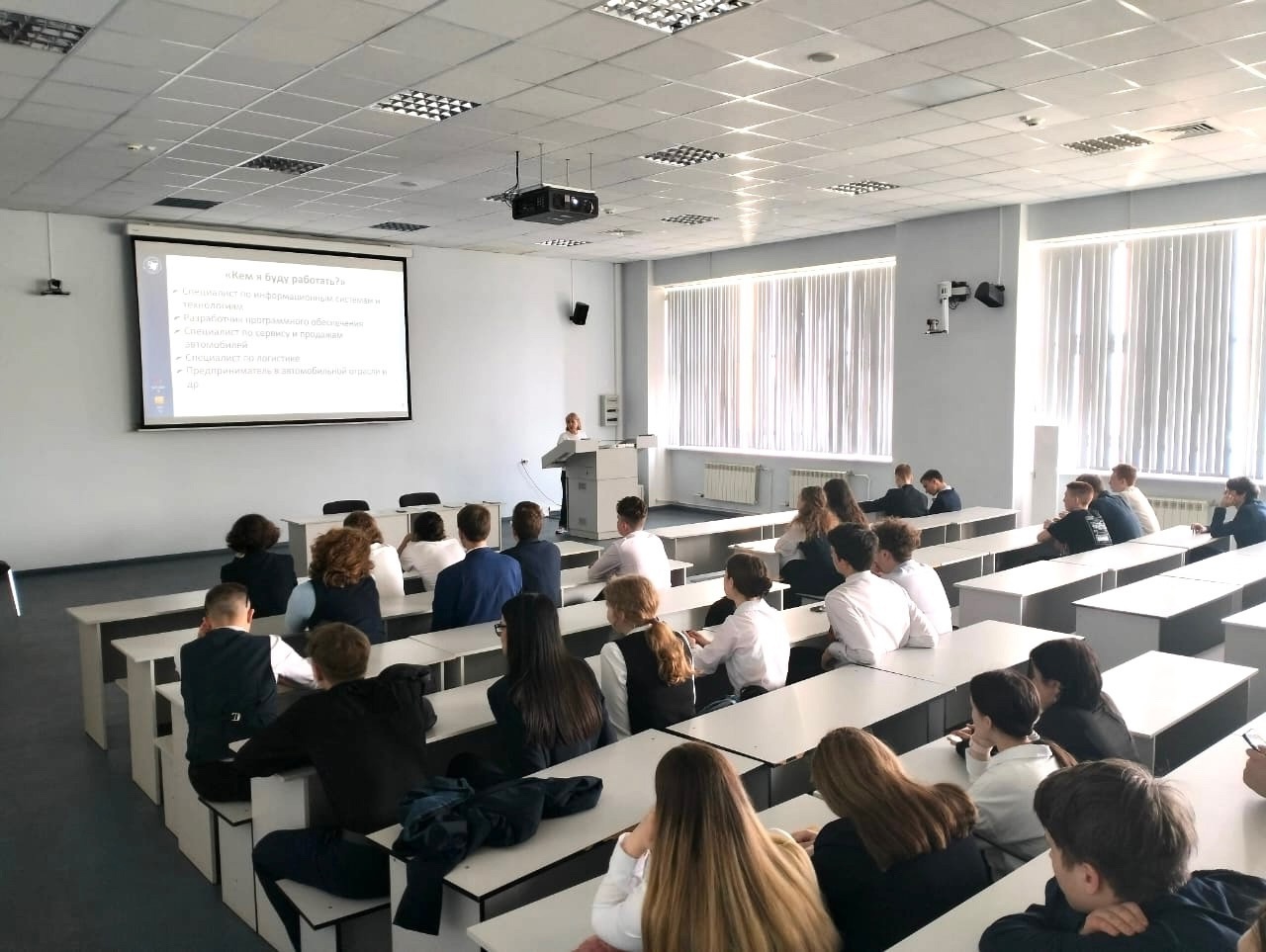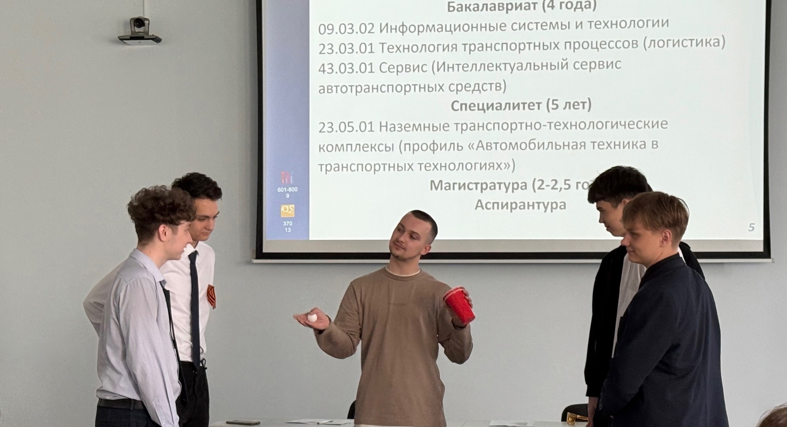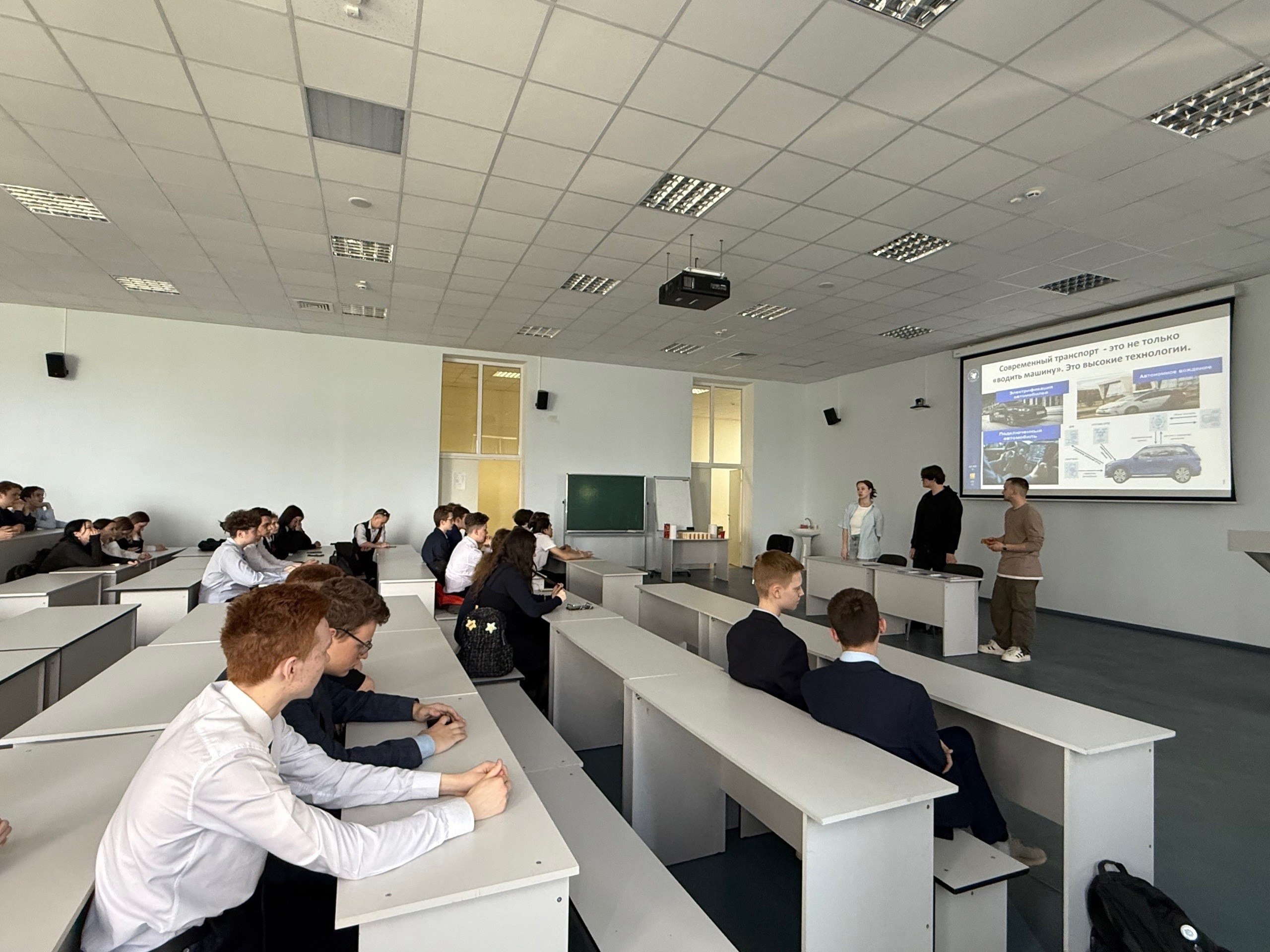 Школьники узнали о перспективных направлениях транспортной отрасли: беспилотных технологиях, электромобилях, «умных» дорогах и экологичном транспорте. Особый интерес вызвала встреча со студентами группы 1211133 - Егором Бориковым, Анной Лукянец и Виталием Вороновым, которые поделились опытом совмещения учёбы с работой и рассказали о выборе профессии.