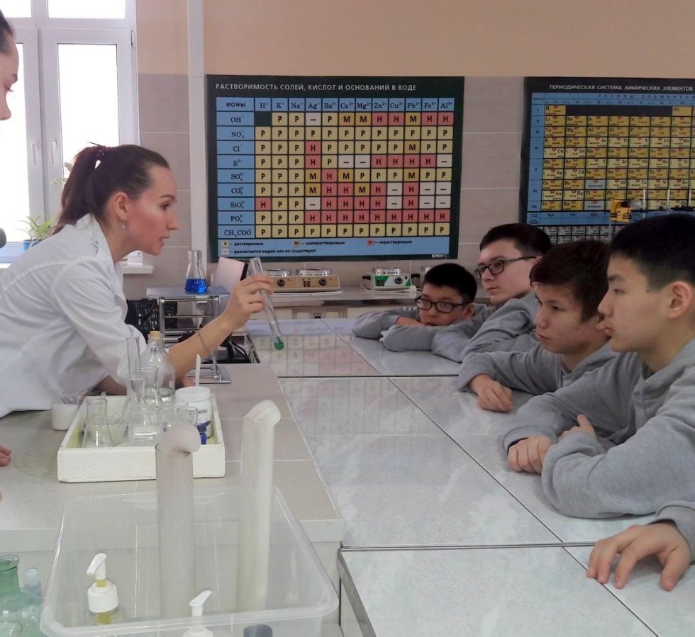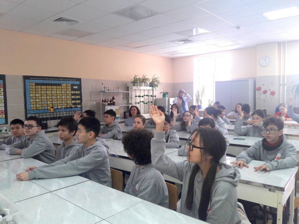 Ученики с интересом и нескрываемым восторгом наблюдали за реакциями, с удовольствием помогали студентам проводить опыты, высказывали предположения по объяснению некоторых явлений. Ангелина Ващенко рассказала о Казанском федеральном университете и Деревне Универсиады, пригласив всех поступать в наш университет.