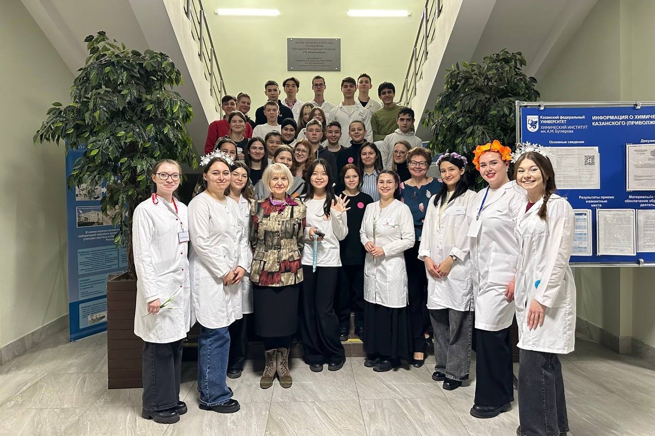 В первый день фестиваля обучающиеся 9В класса МБОУ «Средняя общеобразовательная русско-татарская школа №111» Советского района г. Казани (классный руководитель Тимина Полина) приняли участие в квест-игре «Двенадцать химических месяцев», в ходе которой познакомились с историей Химического института. Ребят сопровождали студенты 07-211 группы во главе со старостой Вольновой Дарьей, а также доцент Низамов Ильнар и преподаватель Лихачева Диляра.