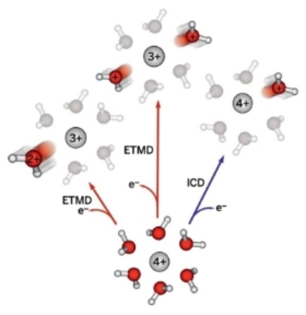 Оба маршрута релаксации иона металла, возбужденного рентгеновским излучением, приводят к ионизации одной или нескольких молекул воды, которые затем, разлагаясь с образованием радикалов, могут воздействовать на другие молекулы. Релаксация по механизму ICD занимает менее фемтосекунды, маршрут ETMD реализцется за 20 фемтосекунд.