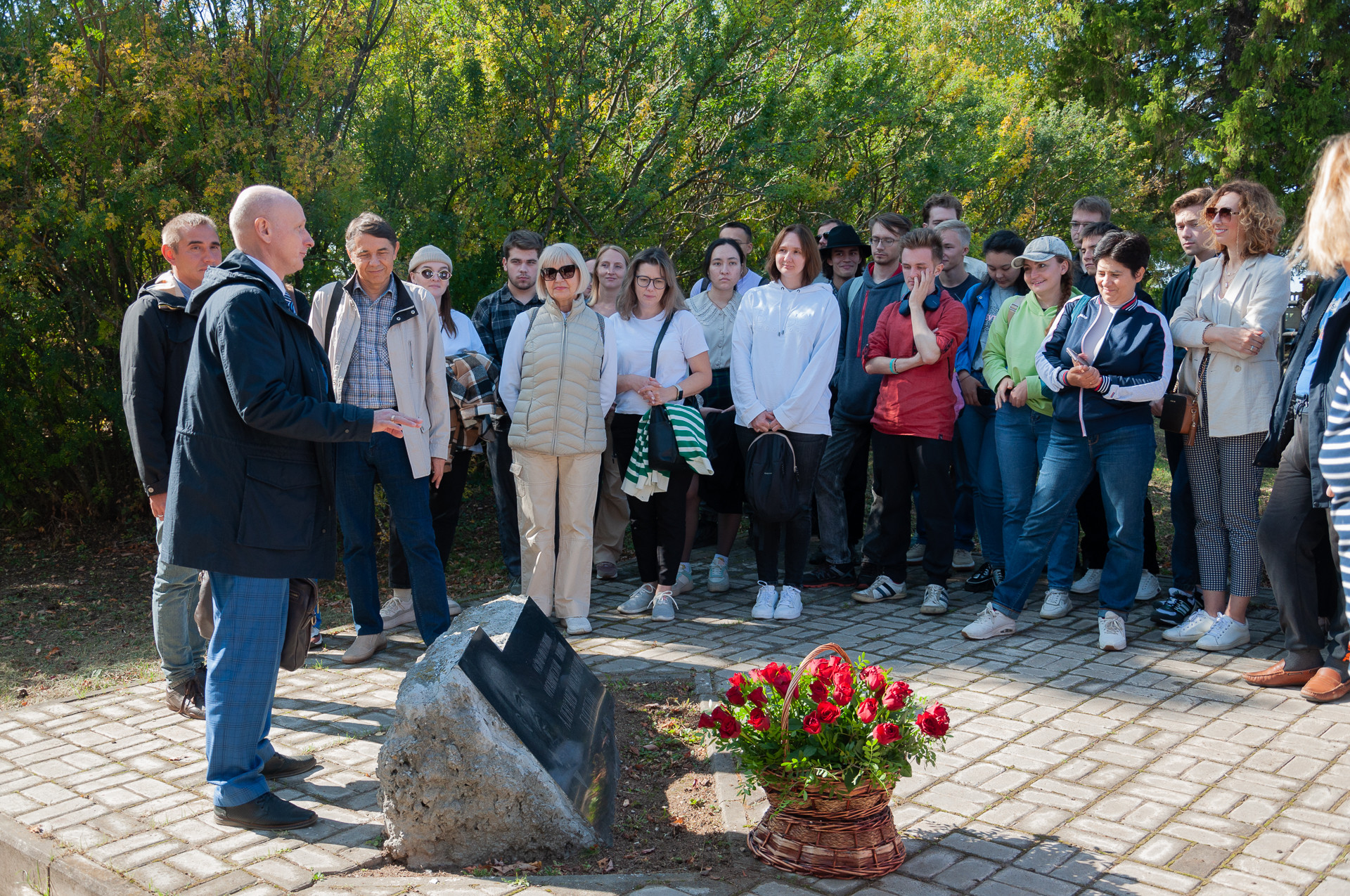 Первой нашей остановкой стало кладбище, на котором похоронен Бутлеров. Над могилой химика воздвигнута часовня, а перед входом – памятный камень. Нашу делегацию встретили сотрудники Билярского государственного историко-археологического и природного музея-заповедника во главе с директором Шакировым Зуфаром Гумаровичем, кандидатом исторических наук, доцентом кафедры археологии и реставрации наследия Института международных отношений КФУ.
