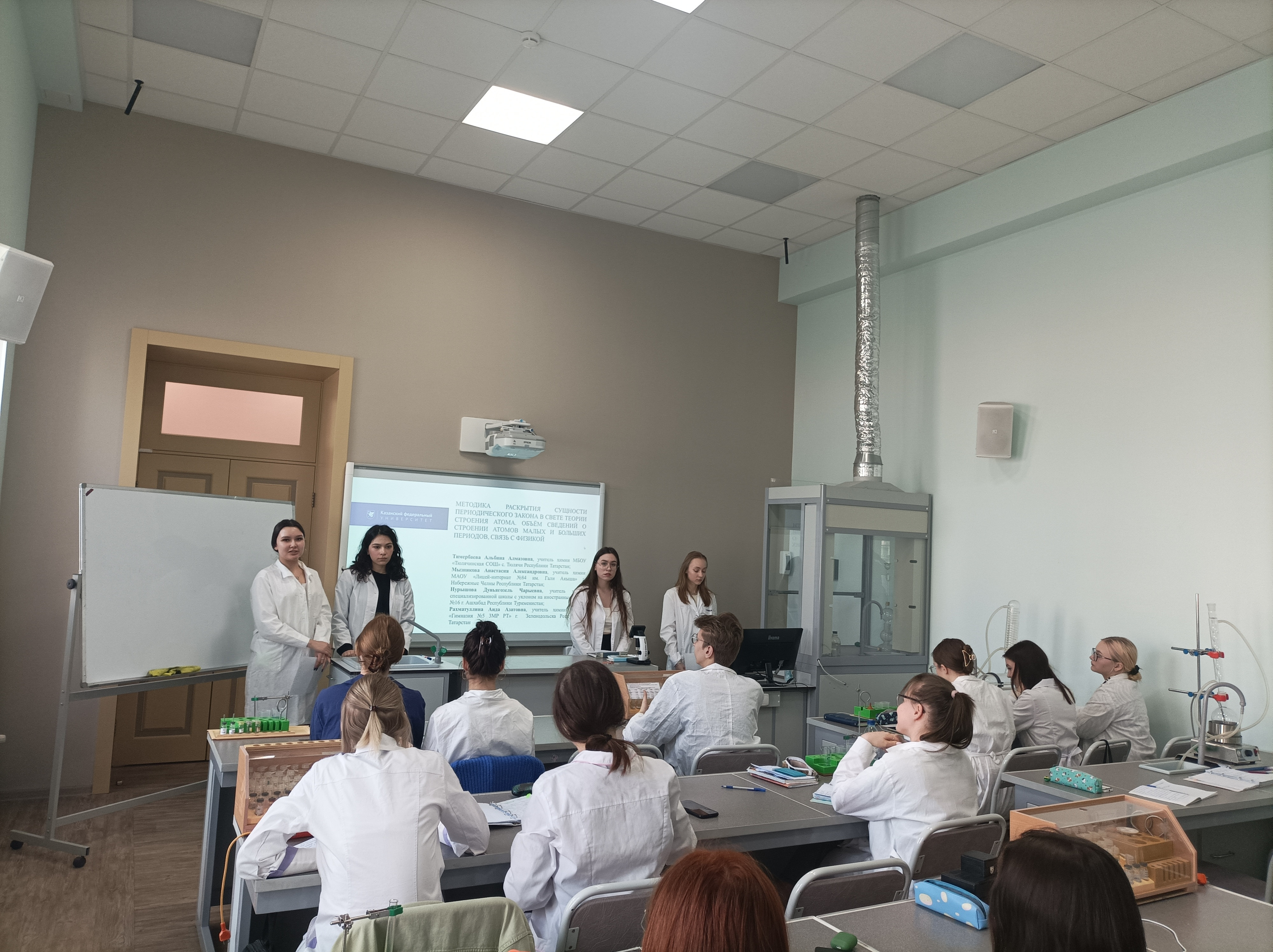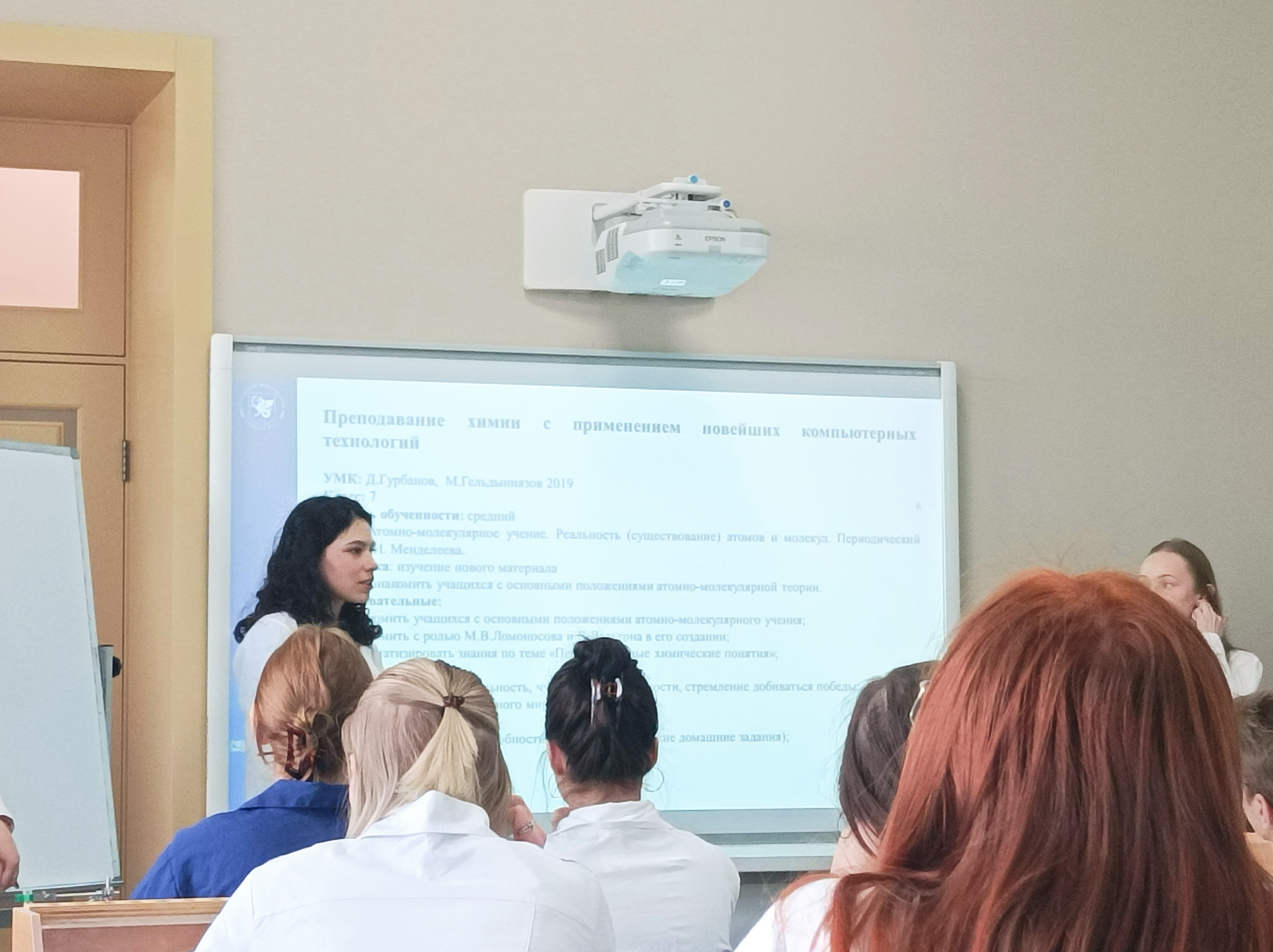 Студенты в ходе аудиторных занятий по методическим дисциплинам проходят профессиональную подготовку не только в проведении уроков и внеклассных мероприятий по химии, но и в организации интерактивной работы с аудиторией, выступая перед коллегами и аргументированно отвечая на их вопросы