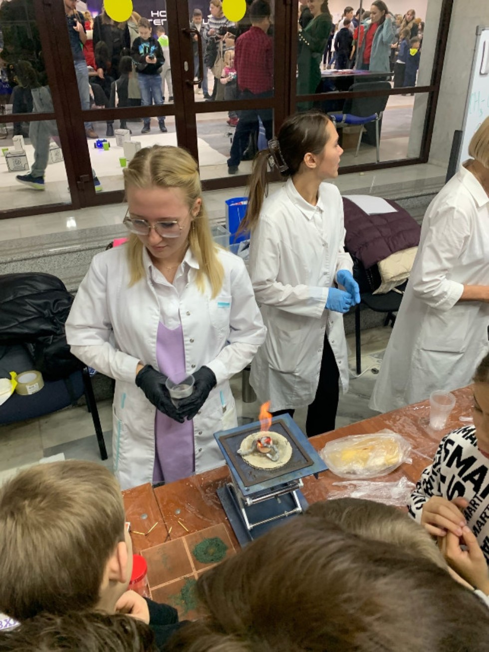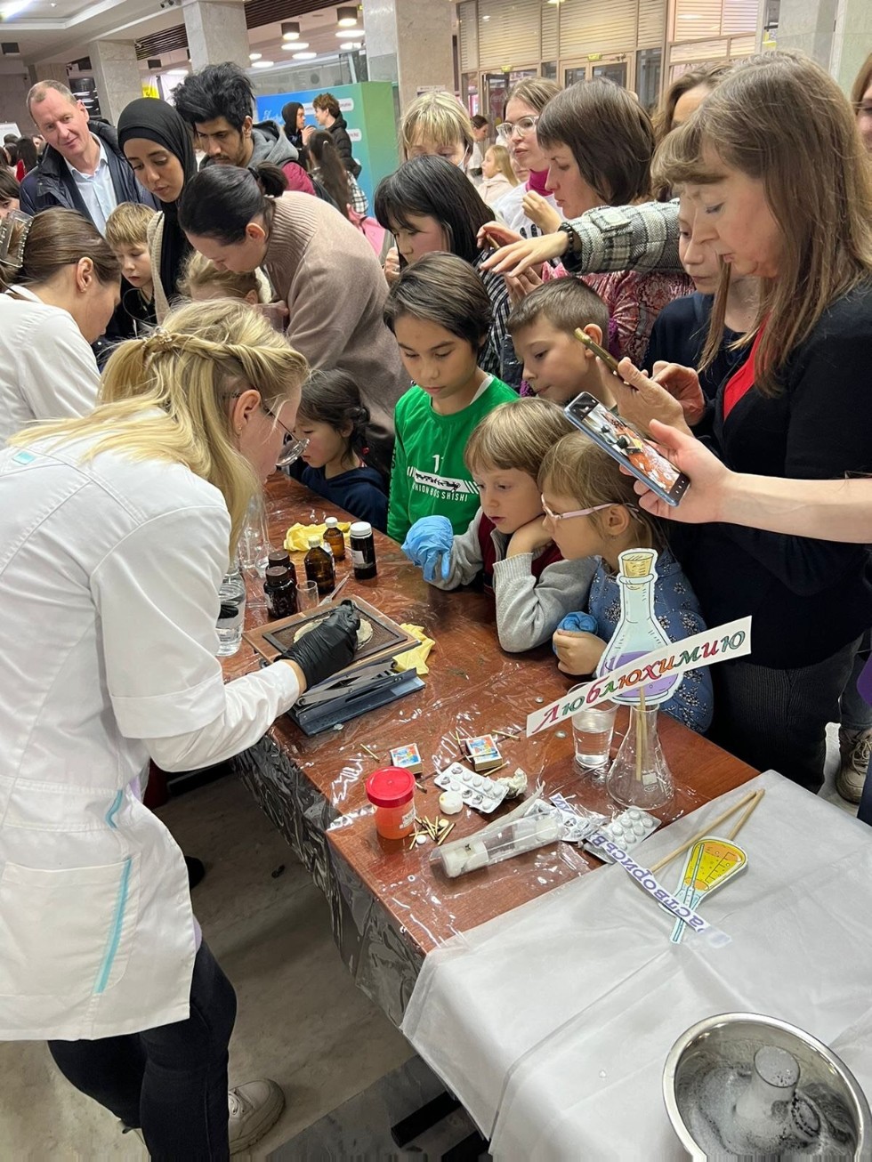 Наибольший интерес вызвали опыты с сухим льдом и «волшебной» жидкостью. Традиционно привлекли повышенное внимание «Вулкан», «Фараоновые змеи», «Космическая кровь», «Зубная паста для слона», «Выращивание водорослей», «Дым машины», «Радуга» и другие. Кроме того, посетителям научно-популярного проекта представилась возможность ознакомиться с профориентационными буклетами и сайтом Химического института имени А.М. Бутлерова.