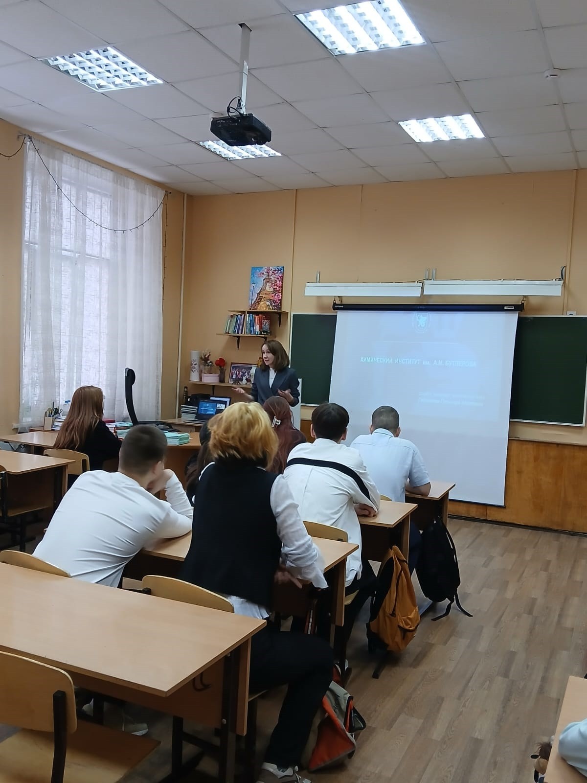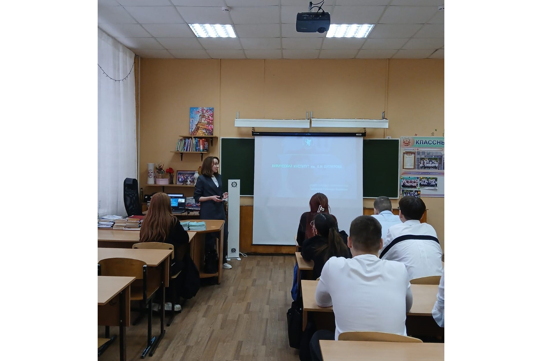 20 февраля 2025 г. доцент кафедры физической химии Химического института им. А.М. Бутлерова, кандидат химических наук Гайнанова Гульнара провела беседу с учениками 9 класса школы № 15. Во время своего выступления Гульнара Ахатовна привела примеры из будней ученых Химического института, рассказала о возможностях участия в конкурсах на гранты и выступления с результатами своей работы на конференциях.