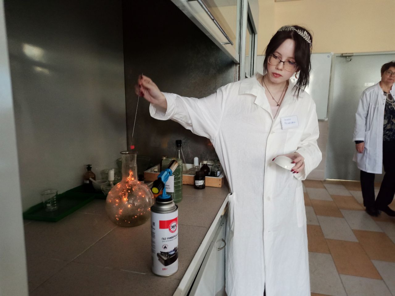 8 ноября 2022 г. студенты-первокурсники подготовили квест «Химическая арена» по мотивам легенд греческой цивилизации для обучающихся 8 Б класса МБОУ «Гимназия №102 им. М.С. Устиновой» Московского района г. Казани (31 человек). Учитель химии – Валова Ангелина Андреевна, магистрант I курса Химического института им. А.М. Бутлерова КФУ, магистерская программа 44.04.01: Педагогическое образование, профиль: Живая химия: новые подходы в преподавании химии.