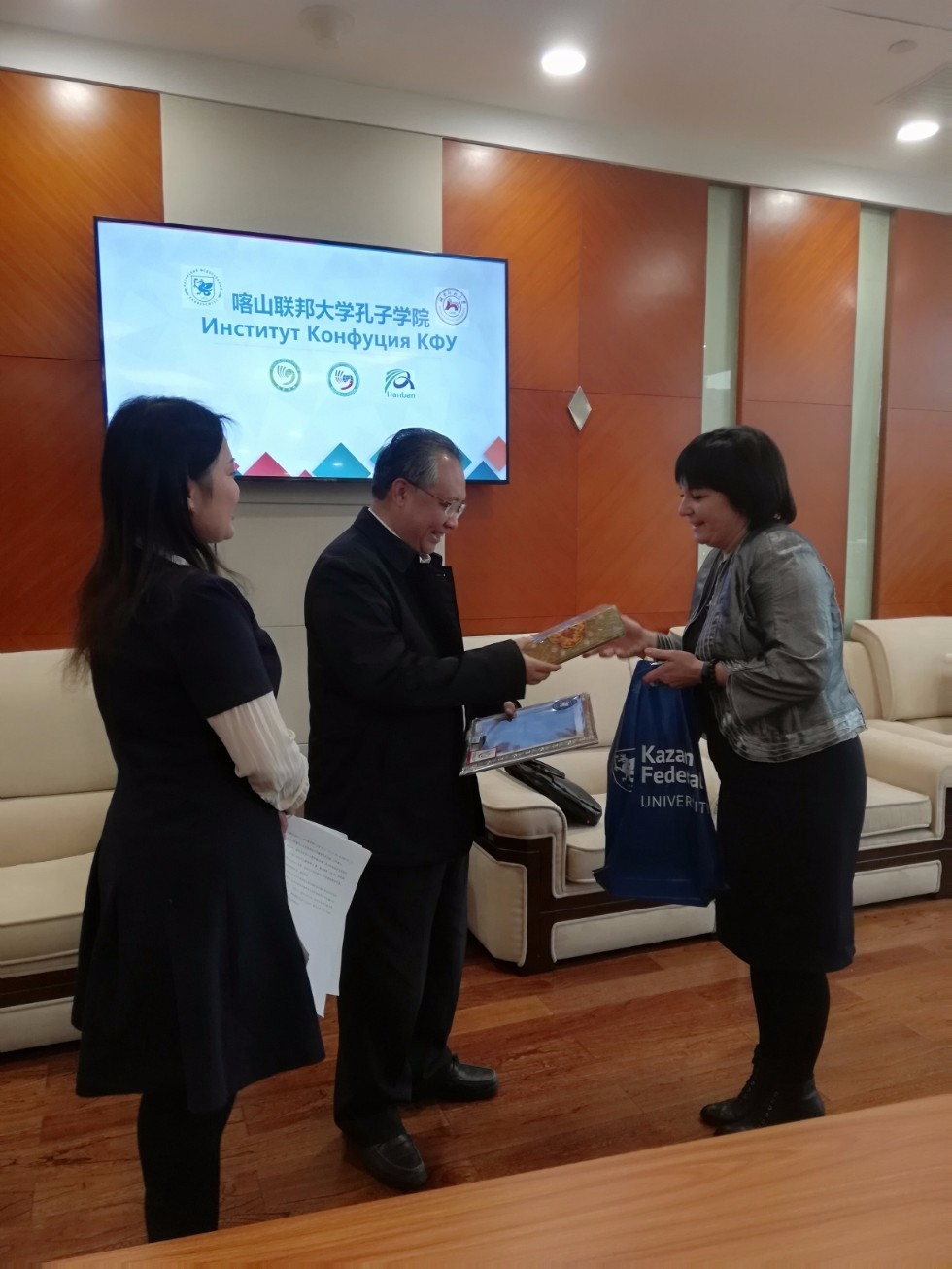 В конференц-зале «Экспоцентра» 10 декабря состоялось XII заседание Правления Института Конфуция Казанского федерального университета. Со стороны КФУ в заседание приняли участие директора Института Конфуция КФУ Аликберова А.Р. и г-жа И Янпинь, а также декан Высшей школы международных отношений и востоковедения Хабибуллина Эльмира Камилевна. Со стороны Хунаньского педагогического университета: проректор ХПУ Оуян Яо, заместители директора Департамента внешних связей Тан Цуньчжун и Ли Мяо, а также прошлый директор Института Конфуция КФУ с китайской стороны Ли Ланьи. Основными вопросами повестки были следующие вопросы: механизм изменения членов Правления, отчет о деятельности за 2019 год и утверждение Плана работы на 2020 год, а также обсуждение путей углубления сотрудничества КФУ и ХПУ в рамках деятельности Института Конфуция.