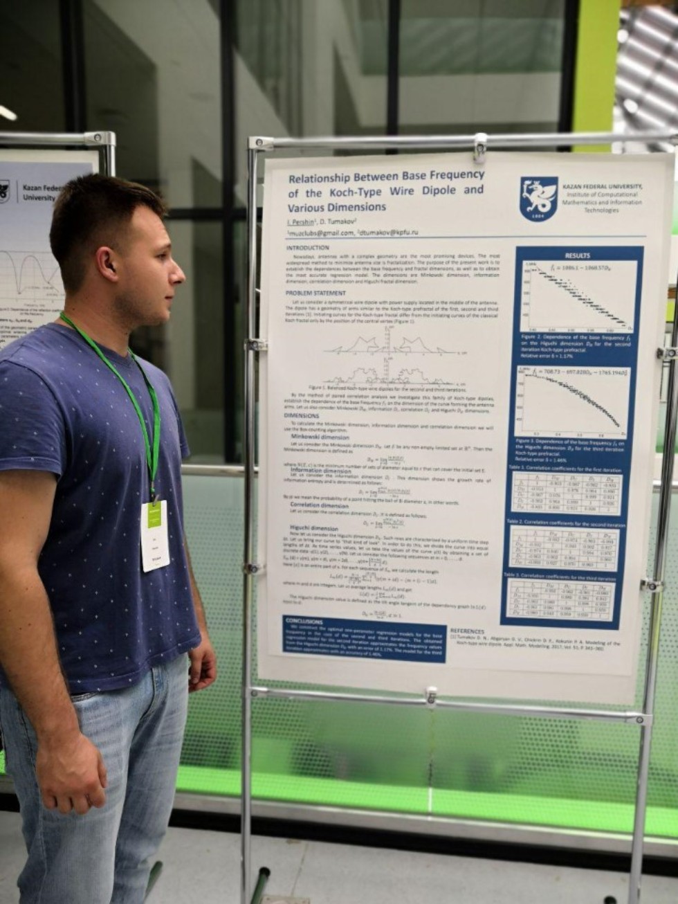 Поздравляем студента четвертого курса Илью Першина с успешным выступлением в Конкурсе на лучшую научную работу студентов КФУ. Он выступил с докладом на тему «Модифицированные методы подсчета коробок для оценки фрактальной размерности кривых» и был отмечен в номинации «Актуальное исследование в области компьютерных наук». Научный руководитель Ильи - заведующий кафедрой прикладной математики Дмитрий Николаевич Тумаков.