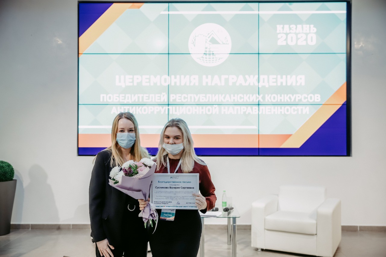 Также в рамках работы форума состоялась торжественная церемония награждения. Работа студентов Казанского федерального университета - руководителей студенческих антикоррупционных комиссий Института социально-философских наук и массовых коммуникаций и Юридического факультета Максима Бутылина и Валерии Сусликовой - была отмечена благодарственными письмами «За существенный вклад в реализацию молодежной антикоррупционной политики в Республике Татарстан».