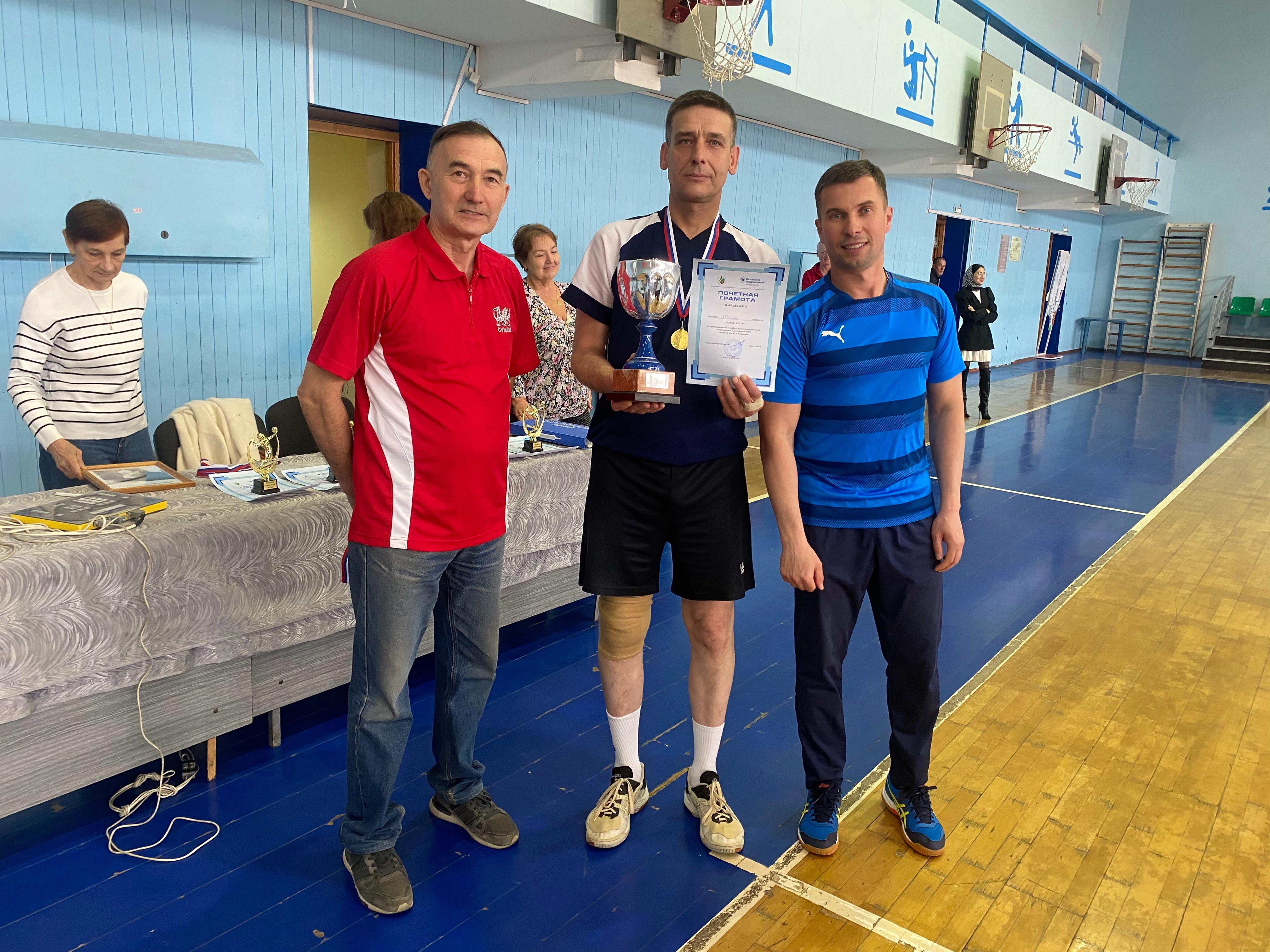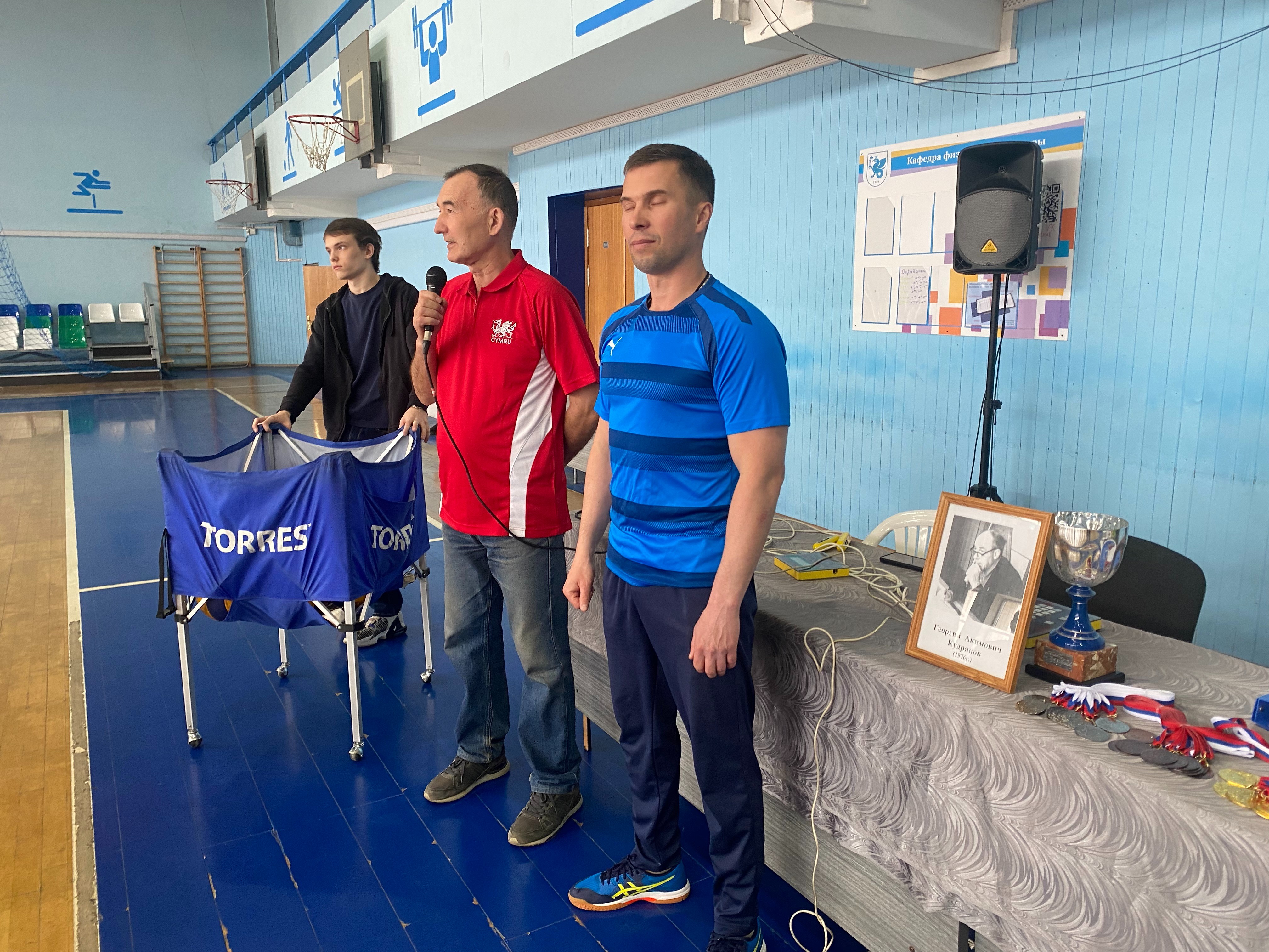 Для справки. Кубок имени Юрия Акимовича Кудрякова учрежден в 2009 году профкомом работников Казанского университета по инициативе ветеранов волейбола. Кудряков 30 лет посвятил подготовке волейболистов сборной команды КГУ и физическому воспитанию студентов. Он неоднократный чемпион ТАССР, с 1947 по 1950 годы – футболист команды мастеров Татсовета «Динамо», мастер спорта по хоккею с мячом, призер всероссийских студенческих игр и ДСО «Буревестник», играл в мужской волейбольной команде Казани. Юрию Кудрякову было присвоено звание «Почетный судья всесоюзной категории». Свыше 150 его воспитанников выполнили норматив первого разряда. 18 апреля 2025 года ему исполнилось бы 106 лет. Главный судья соревнований, старший преподаватель ОУК Артем Григорьев.