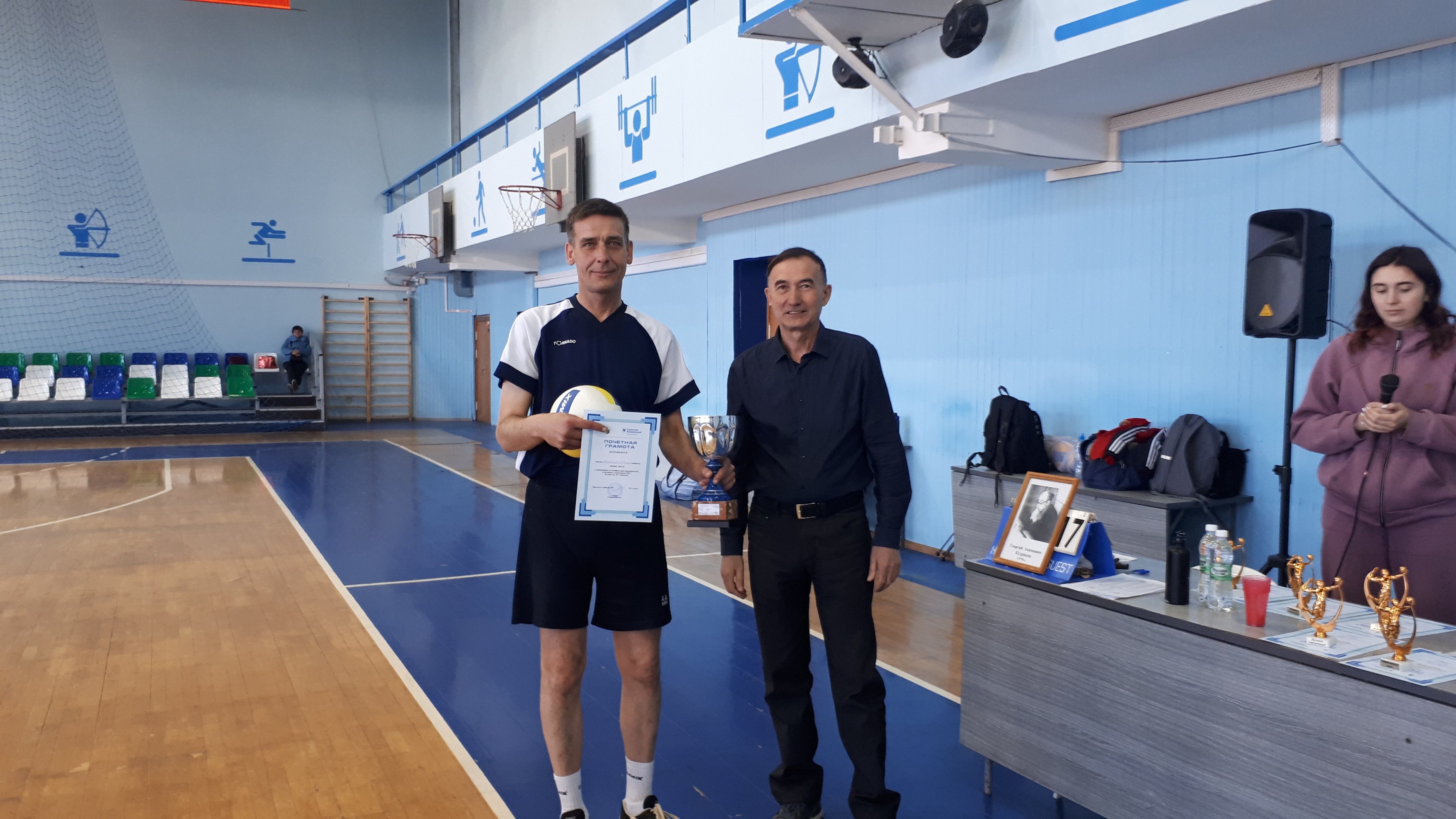 Лучшие игроки турнира были награждены памятными призами: ст. преподаватель ИММ им. Н.И. Лобачевского Джамолидин Хакимов – в номинации «Самый ценный игрок», ст. преподаватель ИФМиБ Александр Никитин – «Лучший подающий», выпускник Юрфака Артур Мирсаев – «Лучший нападающий», выпускник Биологического факультета Леонид Мельников – «Лучший защитник», выпускник Физического факультета Ильяс Марапов – «Лучший связующий».